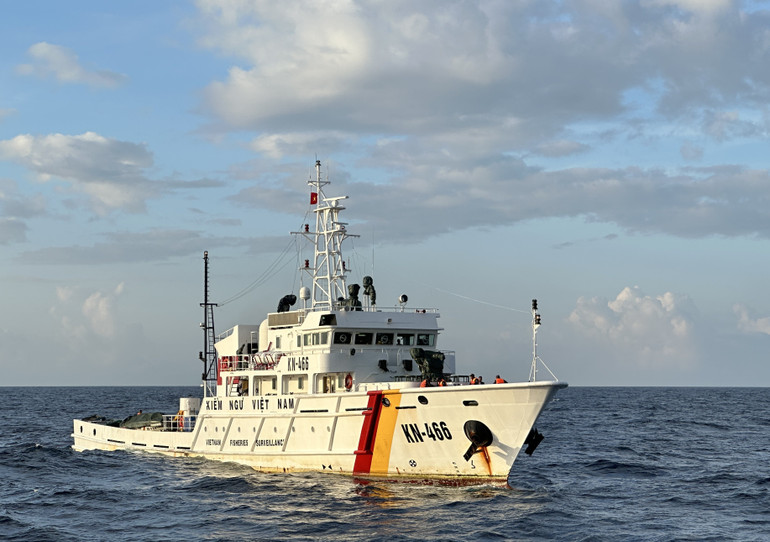 Thuyền trưởng tàu KN 474, Chi đội Kiểm ngư số 4 Vũ Công Tâm báo cáo bên cạnh nhiệm vụ thực thi pháp luật, bảo vệ ngư trường, cán bộ, nhân viên tàu KN 474 còn chú trọng tuyên truyền, nhắc nhở ngư dân tuân thủ quy định về IUU.