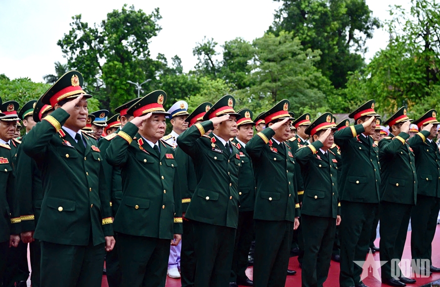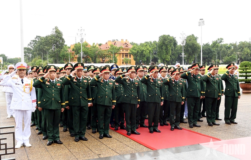 Với lòng biết ơn vô hạn, các thành viên trong Đoàn đã dành phút thành kính tưởng nhớ Chủ tịch Hồ Chí Minh, vị lãnh tụ thiên tài của Đảng, của dân tộc, Người trực tiếp sáng lập, giáo dục, rèn luyện QĐND Việt Nam.
