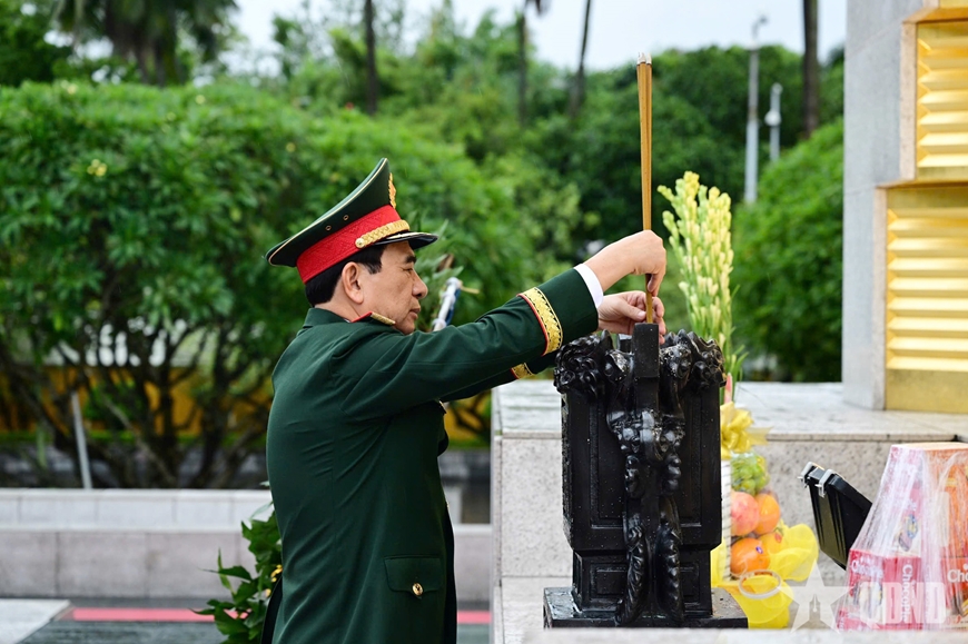 Đại tướng Phan Văn Giang thắp hương tưởng niệm các Anh hùng liệt sĩ.