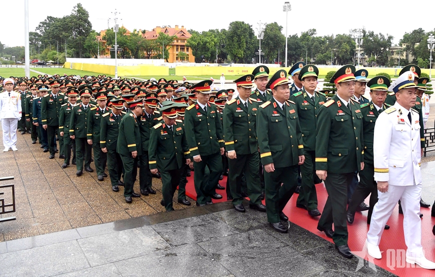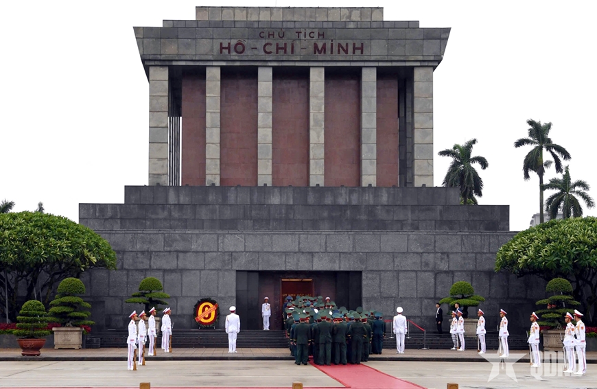 Các đại biểu dự Đại hội đại biểu Đảng bộ Quân đội lần thứ XII vào Lăng viếng Chủ tịch Hồ Chí Minh.
