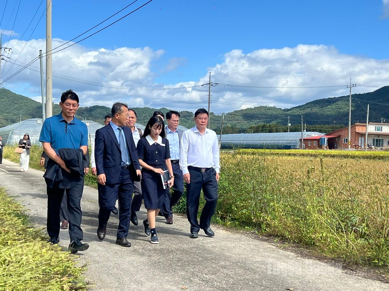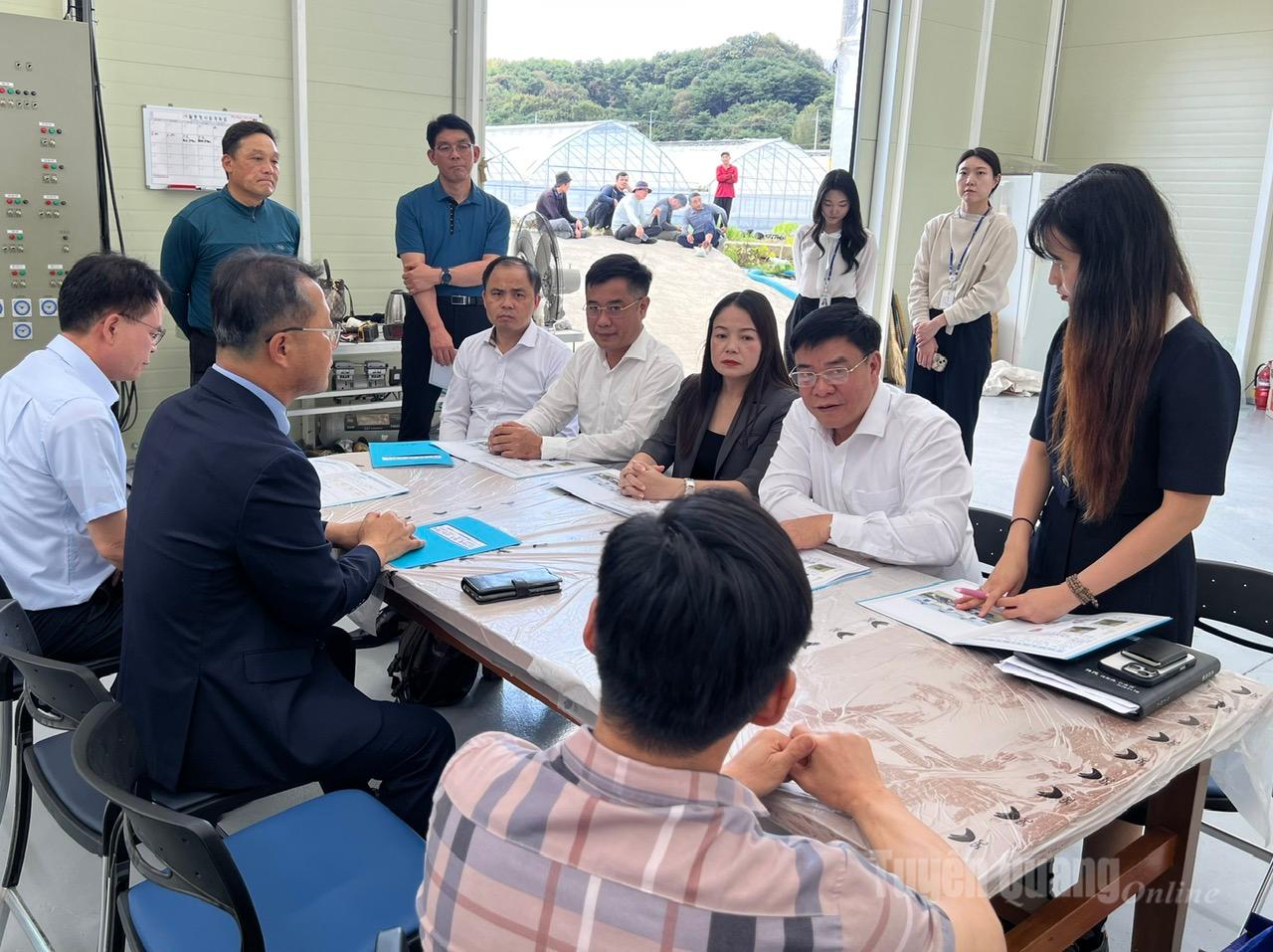 Phó Chủ tịch UBND tỉnh Hoàng Gia Long và thành viên Đoàn công tác thăm nông hộ tại Imsil.