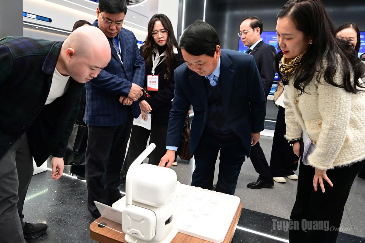 Đoàn công tác của tỉnh Tuyên Quang đã trực tiếp trải nghiệp các sản phẩm trí tuệ nhân tạo AI; tham quan thực tế các mô hình, định hướng phát triển trí tuệ nhân tạo. Các gian trưng bày sản phẩm AI của các công ty công nghệ Trung Quốc với các sản phẩm tiên tiến như: Mô hình lớn Tongyi, robot người, kính AR, trò chơi, giáo dục, truyền thông, ý tế... thể hiện bức tranh phong phú về hợp tác khoa học và công nghệ xuyên biên giới.