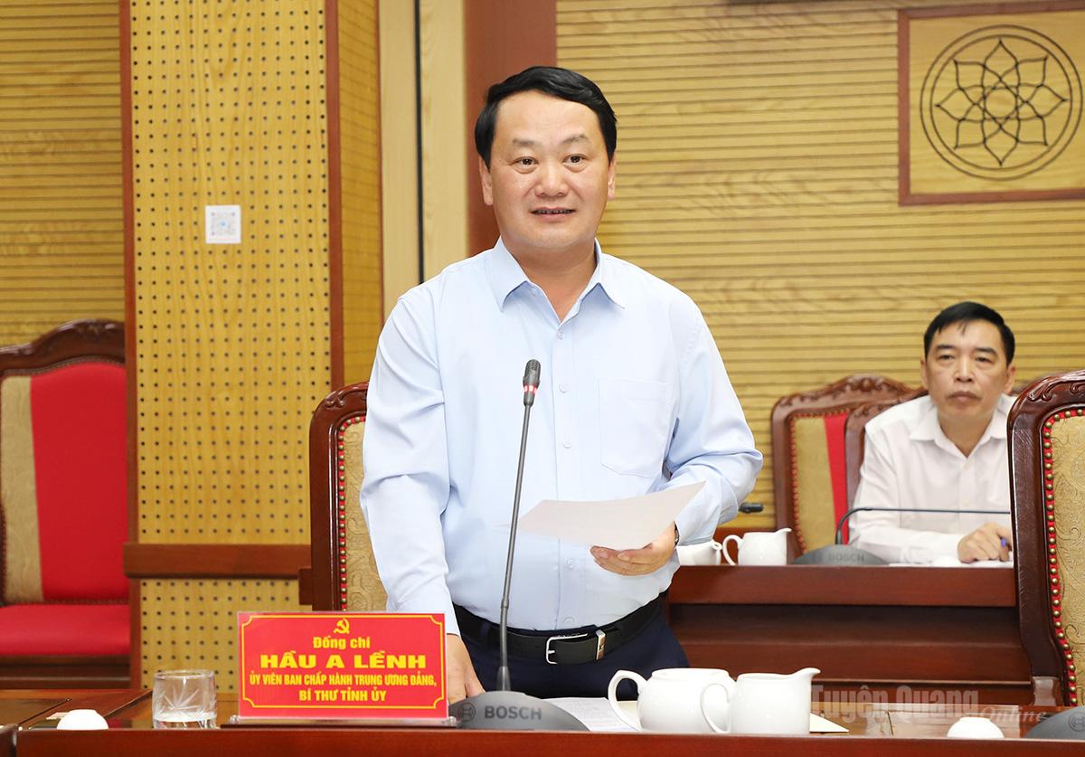 Bí thư Tỉnh ủy Hầu A Lềnh phát biểu tại buổi làm việc.