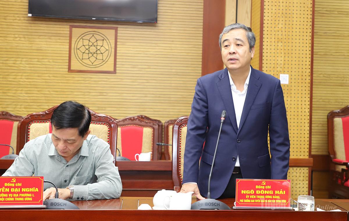Phó Trưởng ban Tuyên giáo và Dân vận Trung ương phát biểu tại buổi làm việc.