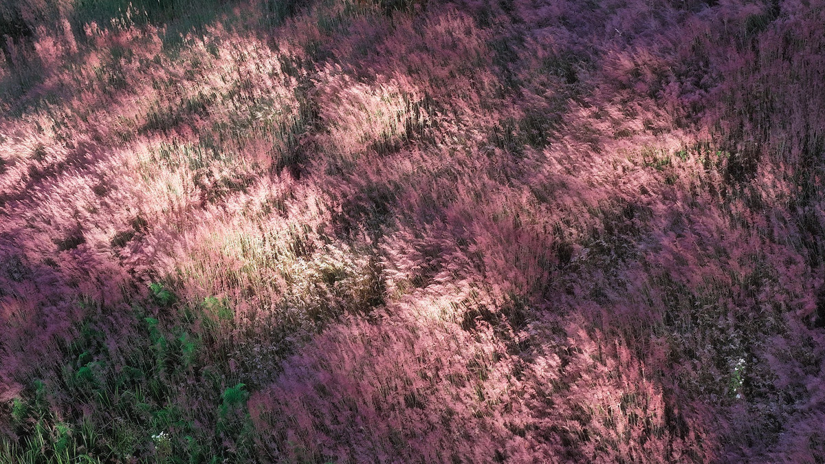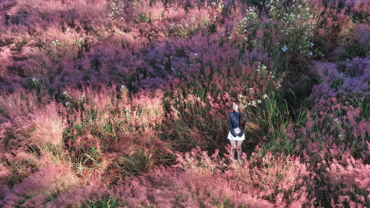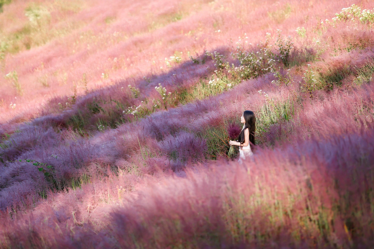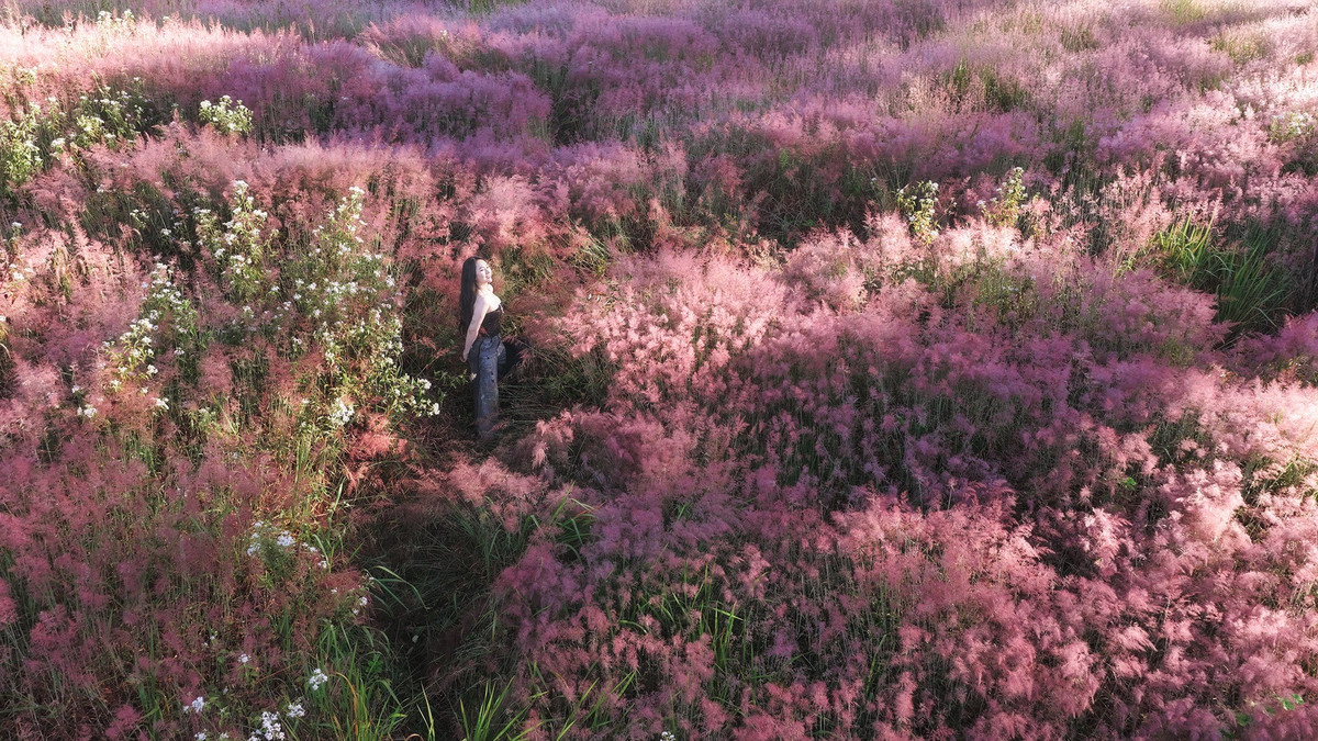 Không gian rộng lớn và màu sắc dịu dàng của cỏ lau hồng còn gợi cảm giác lãng mạn, dễ chịu,