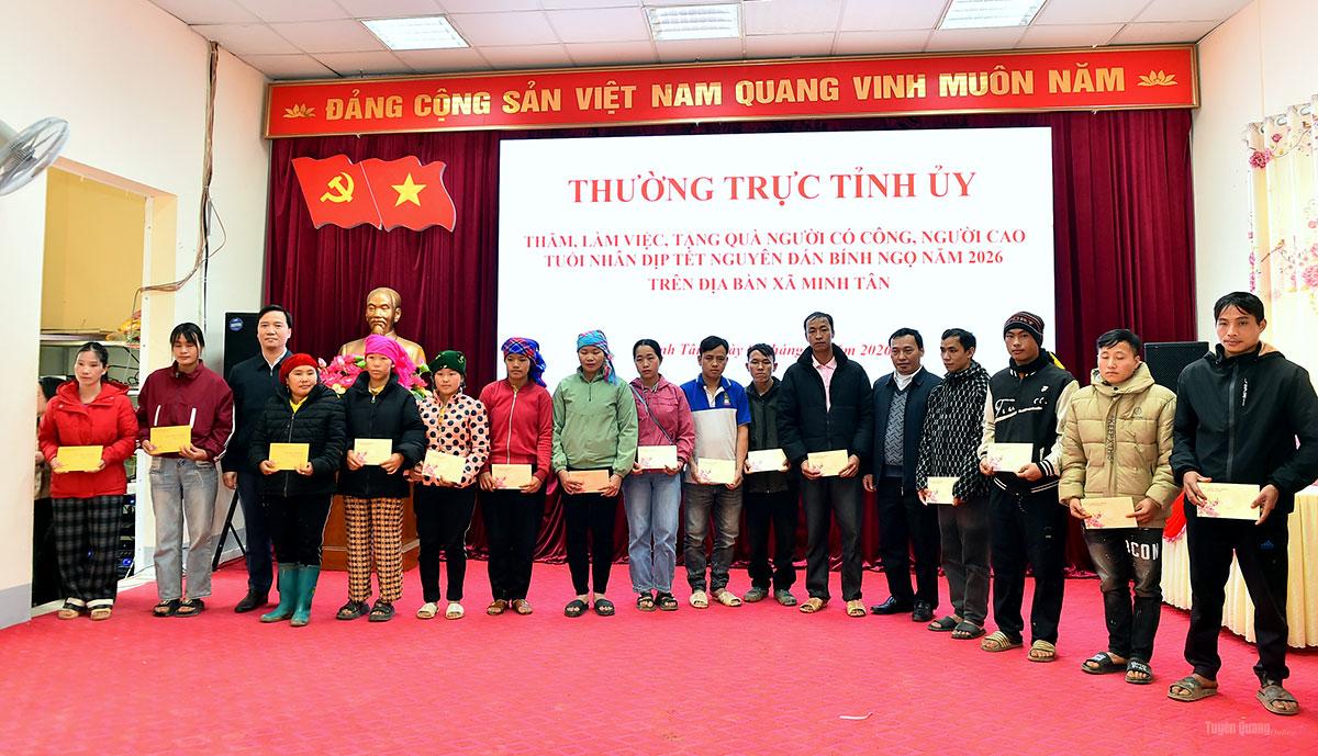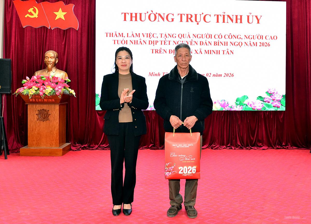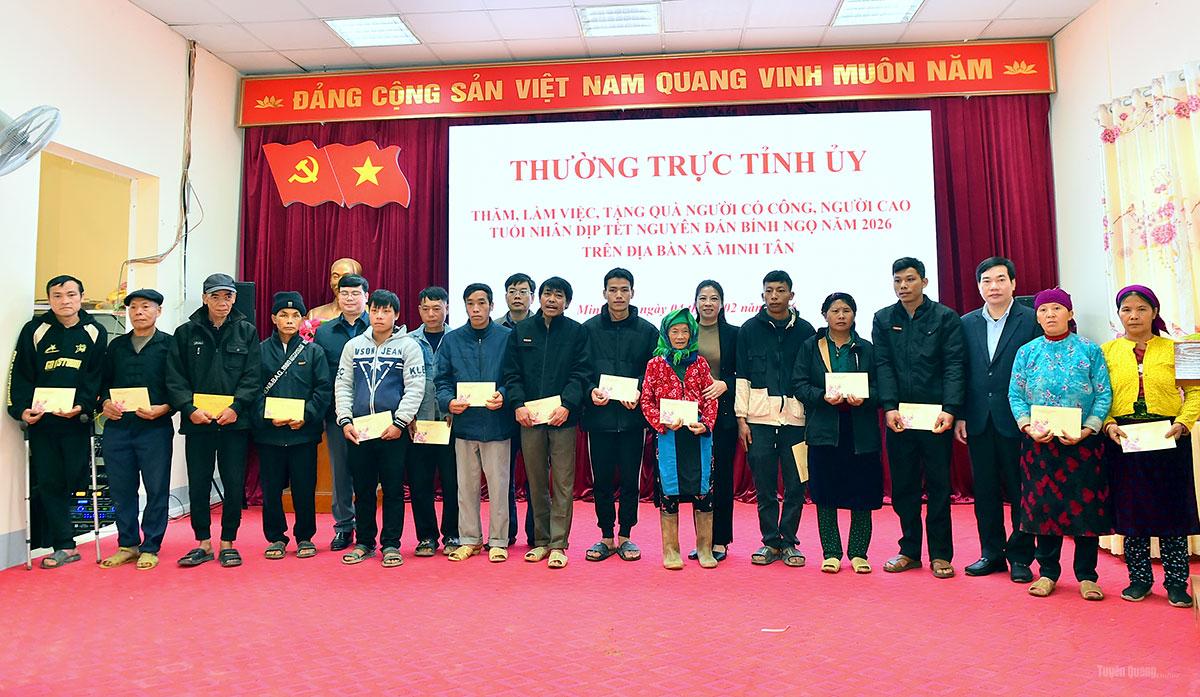 Đồng chí Lê Thị Kim Dung, Phó Bí thư Thường trực Tỉnh ủy đã dự chương trình trao tặng quà Tết cho các hộ nghèo, hộ có hoàn cảnh khó khăn trên địa bàn xã Minh Tân. Tại chương trình, đồng chí Phó Bí thư Thường trực Tỉnh ủy cùng đoàn công tác đã thăm hỏi, trao quà cho các cựu chiến binh; mừng thọ cho 2 cụ cao niên tròn 90 tuổi; đồng thời trao tặng 50 suất quà cho các hộ nghèo, hộ có hoàn cảnh khó khăn.