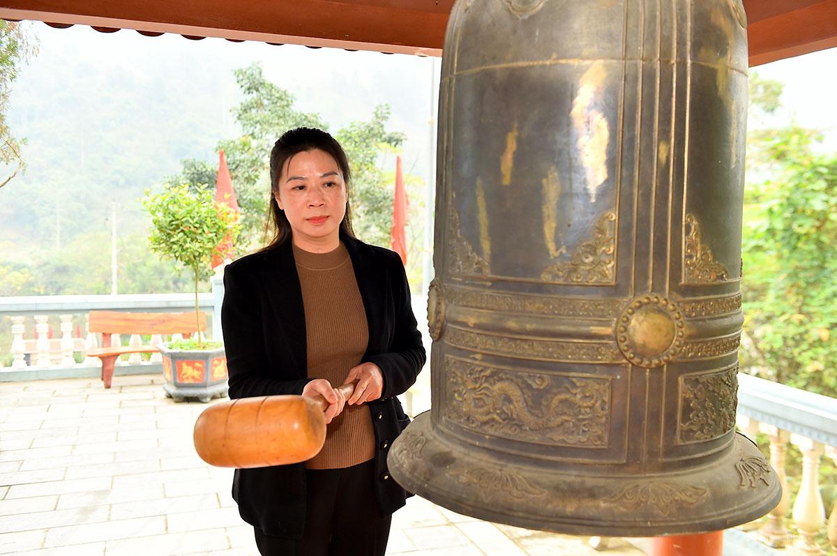 Đồng chí Phó Bí thư Thường trực Tỉnh ủy Lê Thị Kim Dung thỉnh chuông dâng lễ tại Đền thờ các Anh hùng liệt sỹ xã Minh Tân.