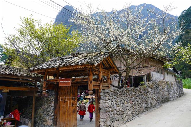 Những cây hoa đào nở rộ ở thôn Lô Lô Chải. Ảnh: Khánh Hòa/TTXVN