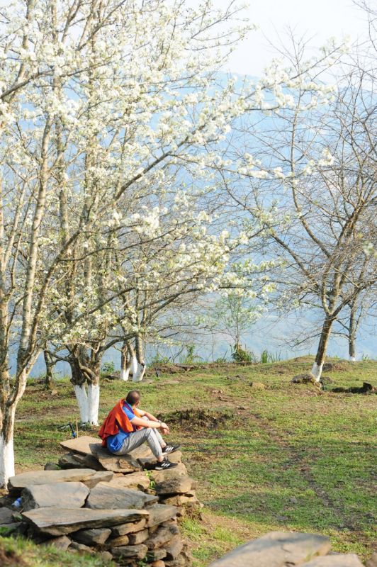 Còn gì thần tiên bằng hạnh ngộ được nằm dài trên cỏ biếc hoặc ngồi dựa lưng vào đá mọc để ngắm hoa lê từ dưới lên. Góc ngắm đó là hoàn hảo nhất, bởi vì chiêm ngưỡng được mọi vẻ đẹp diễm lệ khi ánh nắng thấu quang qua cánh hoa rồi rơi xuống mặt người.