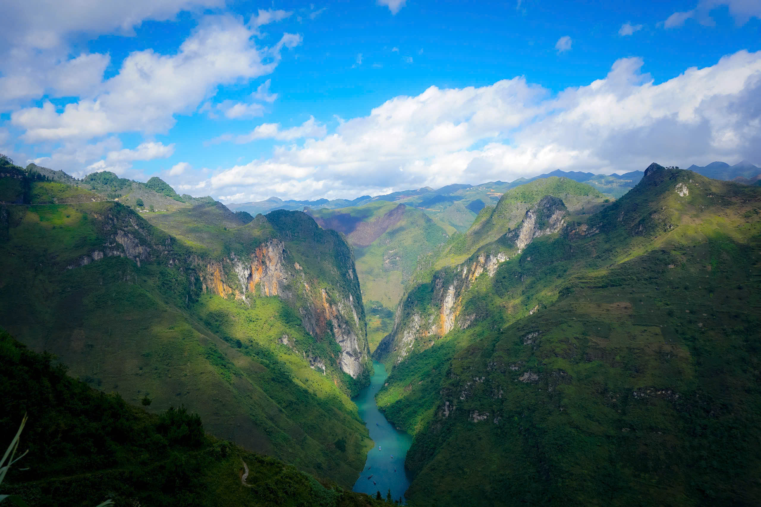 Trong đó, dốc Thẩm Mã gây ấn tượng với chuỗi khúc cua gấp liên tiếp, còn đèo Mã Pí Lèng uốn mình theo sườn núi, mở ra tầm nhìn xuống dòng sông Nho Quế ở độ cao gần 900 m.