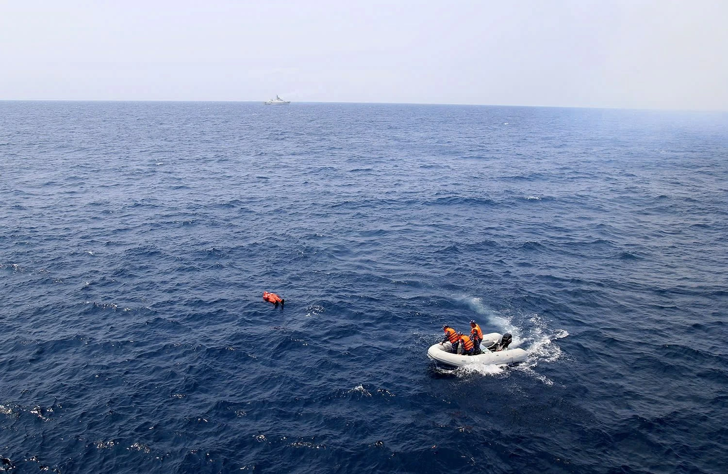 Thực hành khoa mục cứu hộ cứu nạn. (Ảnh: Quân chủng Hải quân cung cấp)