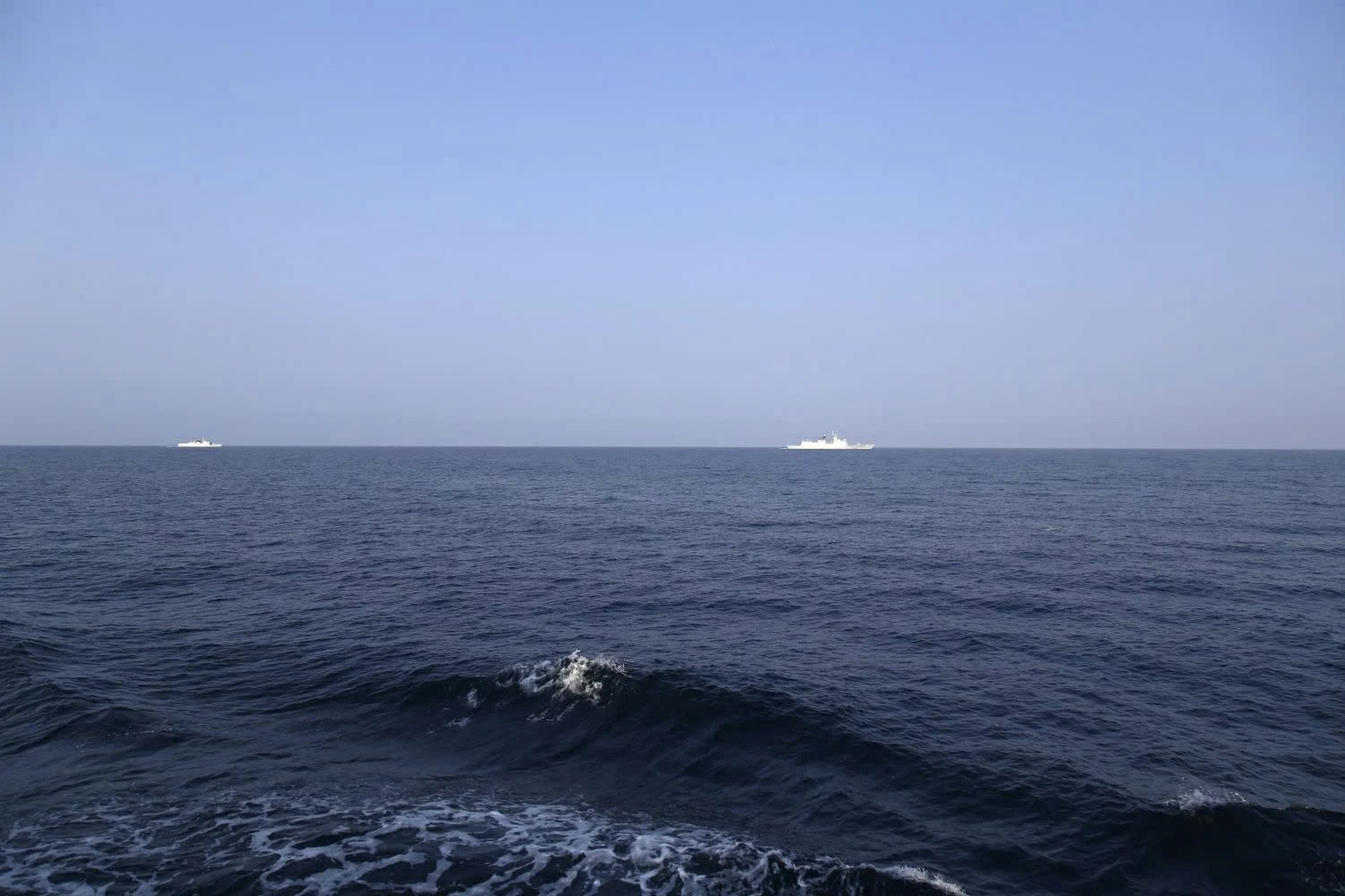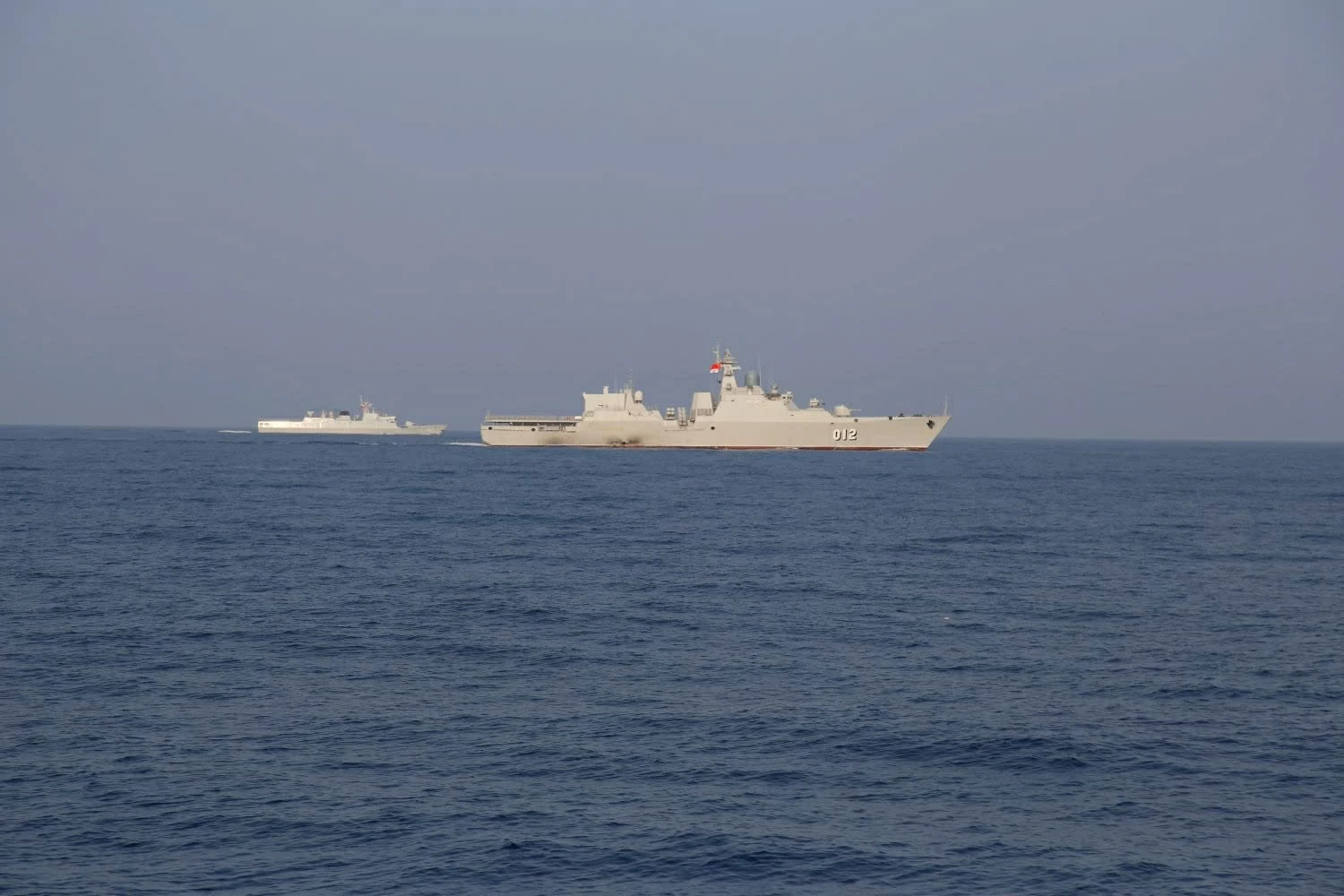 Tàu Hải quân hai nước chào nhau trên biển sau khi hoàn thành nhiệm vụ tuần tra,