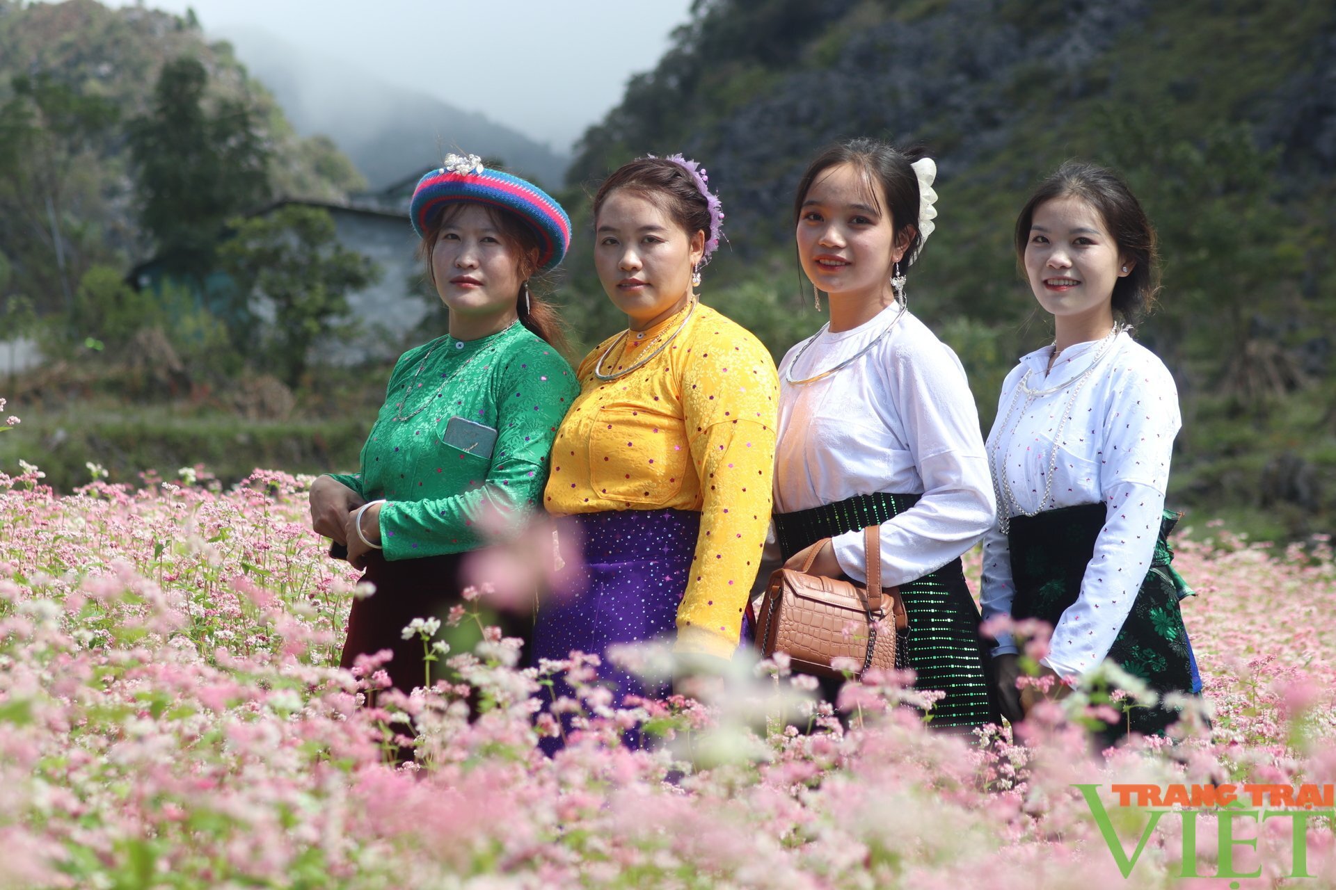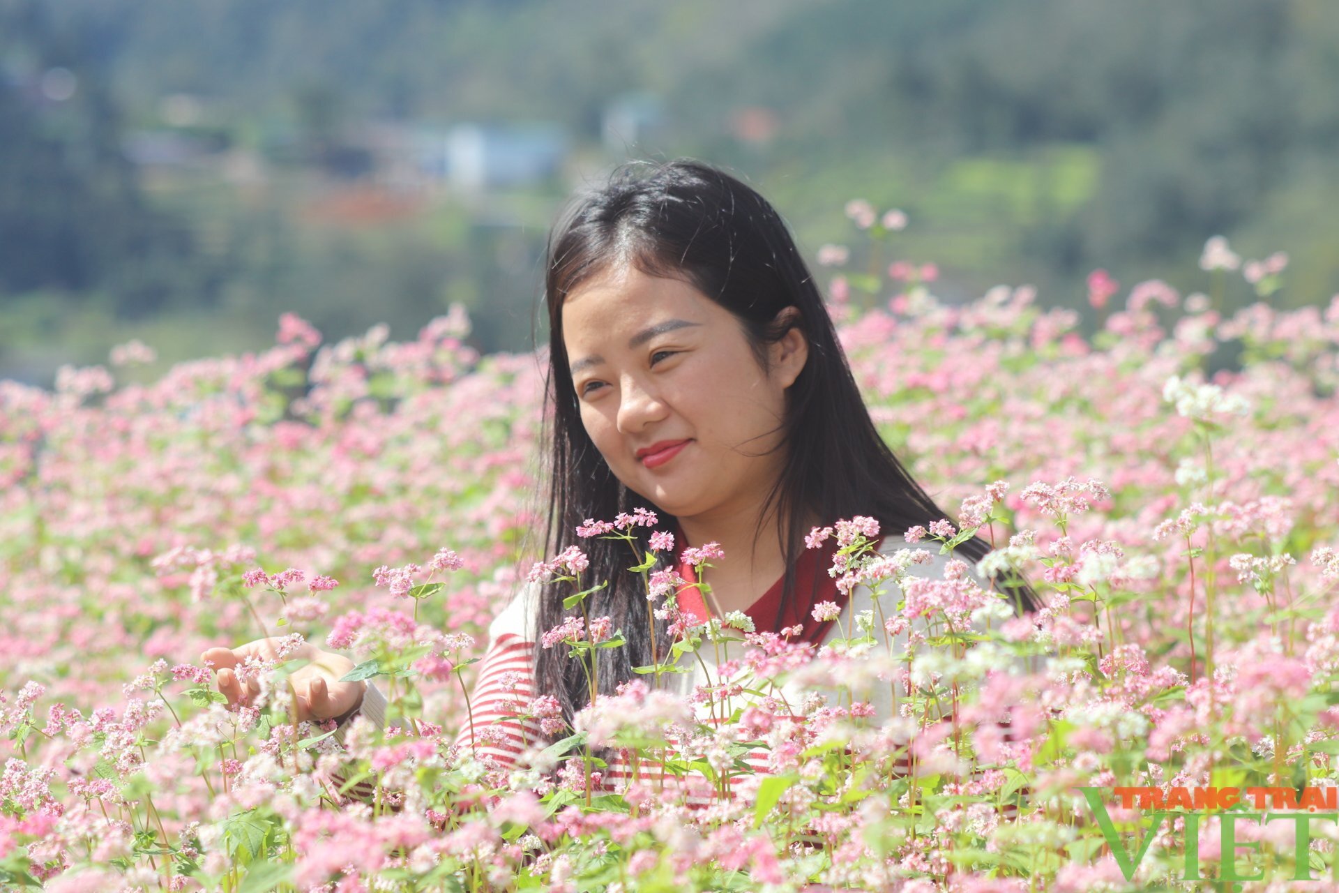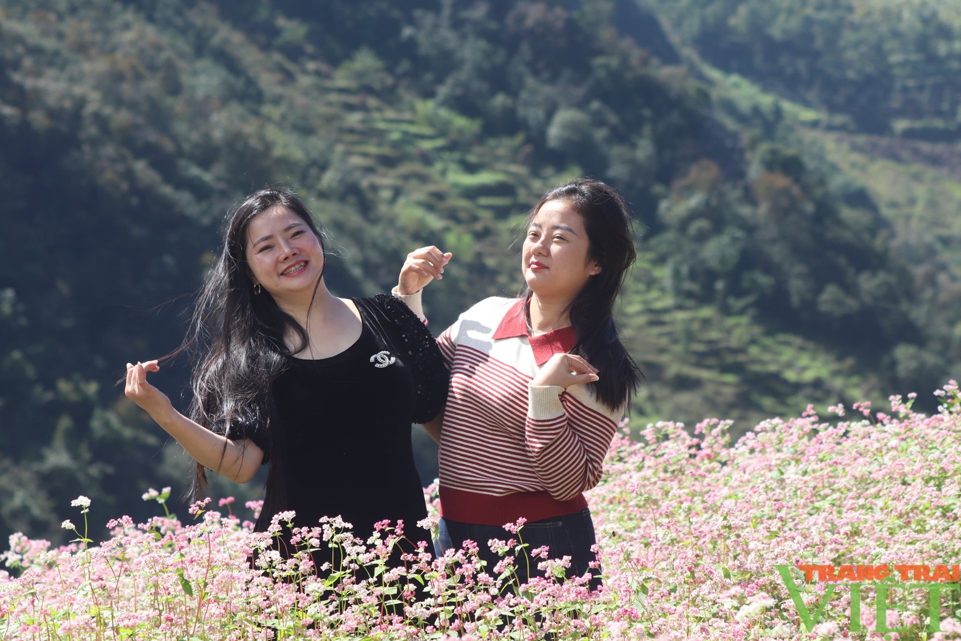 Giữa bạt ngàn đá tai mèo xám bạc, sắc hồng, tím, trắng của hoa tam giác mạch bung nở rực rỡ,