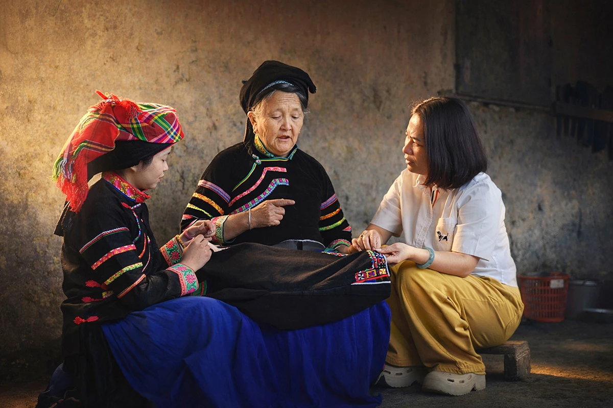 Bà bảo, hồi ấy người Pu Péo nghèo lắm. Muốn có một bộ trang phục cho ra dáng không phải chuyện dễ. Mảnh vải nào còn dùng được đều giữ lại. Những miếng vải màu nhỏ, tưởng như bỏ đi, các bà, các mẹ vẫn nhặt nhạnh, cất dành, rồi ghép lên áo thành hoa văn. Từ những thứ ít ỏi ấy, người xưa vẫn làm ra được bộ trang phục có nét riêng của người Pu Péo. Không cầu kỳ, không phô trương, nhưng nhìn vào là nhận ra.