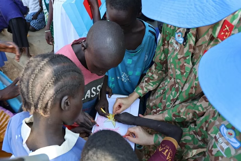 Tại đây, tiếng cười của trẻ em Nam Sudan hòa với tiếng hò reo của các quân nhân Việt Nam trong những giờ học, trò chơi và hoạt động chung.