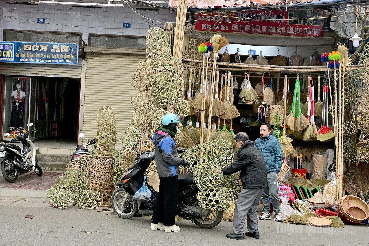 Người chẻ lạt giang bán ở góc chợ Tam Cờ.