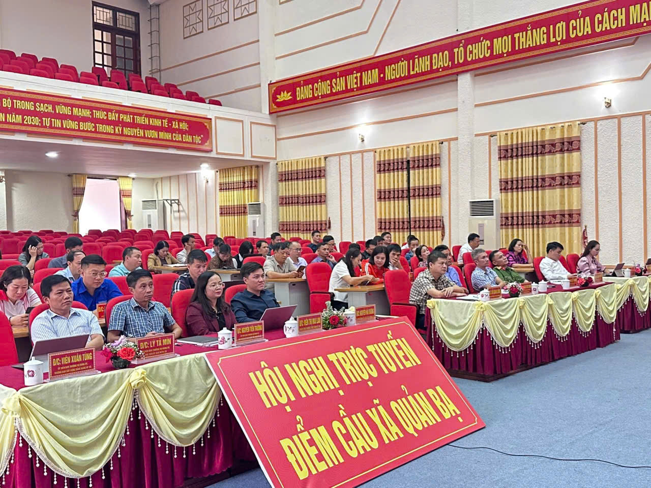 Các đại biểu dự Hội nghị tại điểm cầu xã Quản Bạ