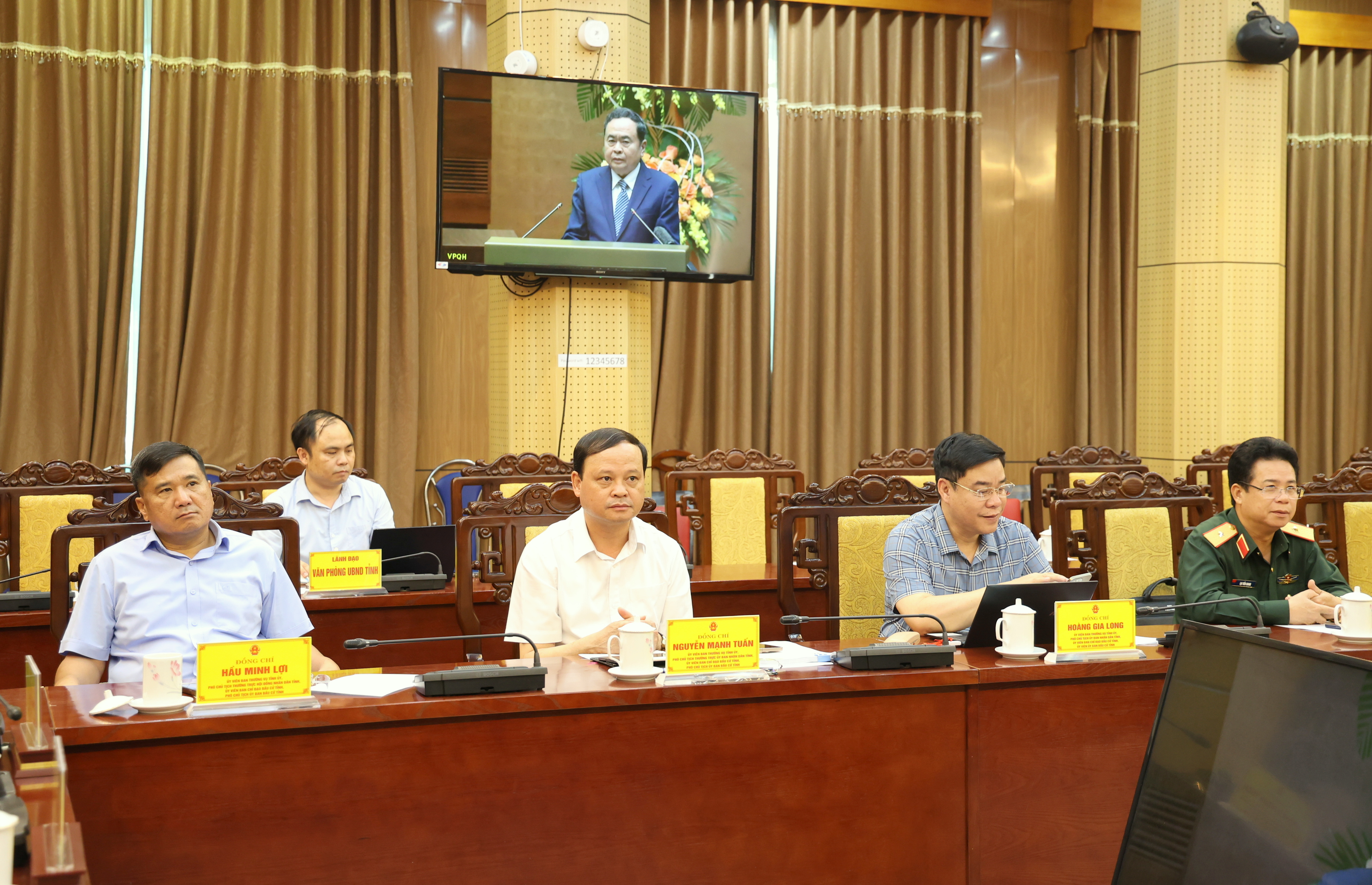 Ma Thế Hồng, Phó Bí thư Tỉnh ủy, Chủ tịch Ủy ban MTTQ tỉnh dự, chủ trì hội nghị tại điểm cầu tỉnh.