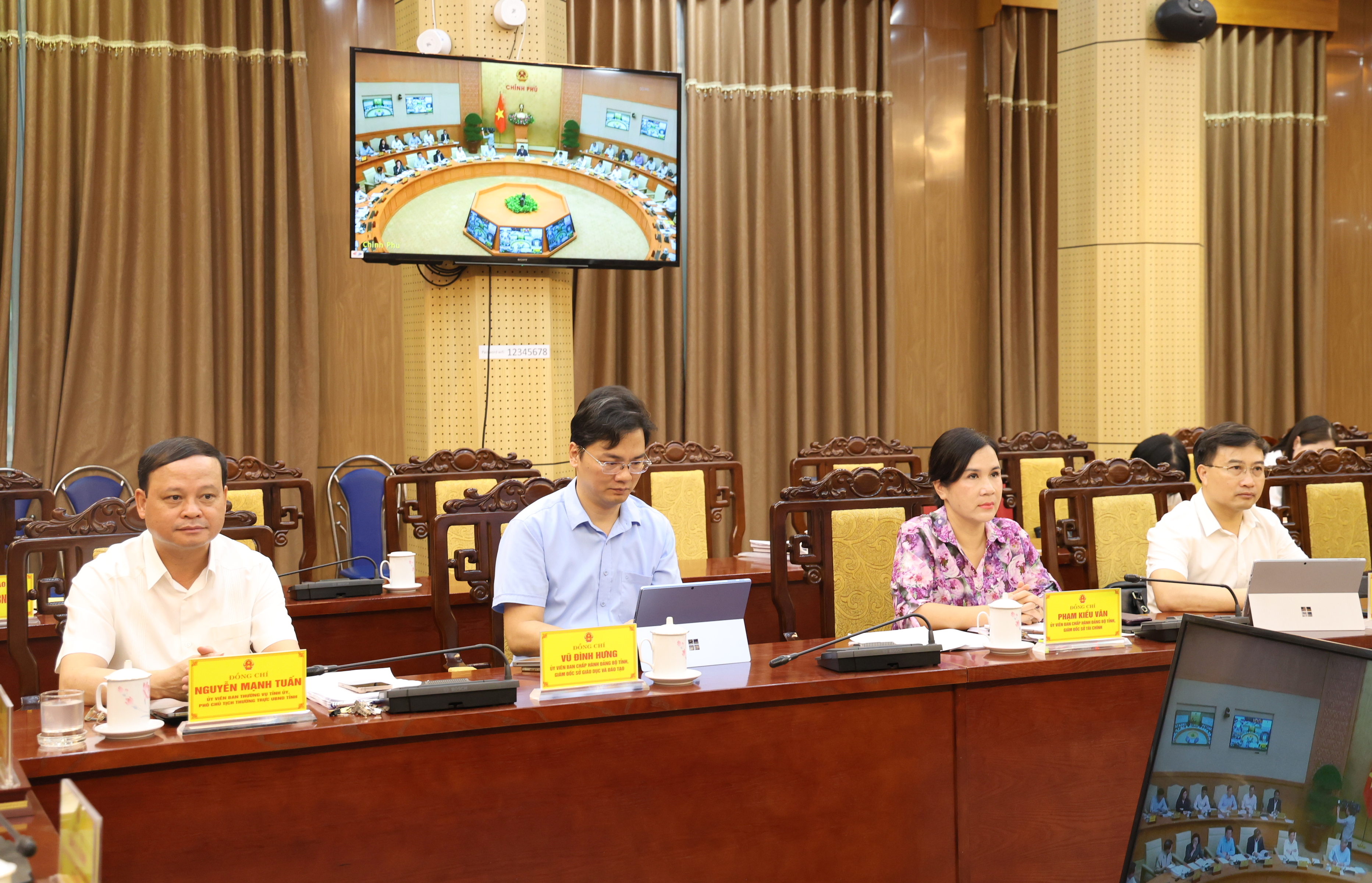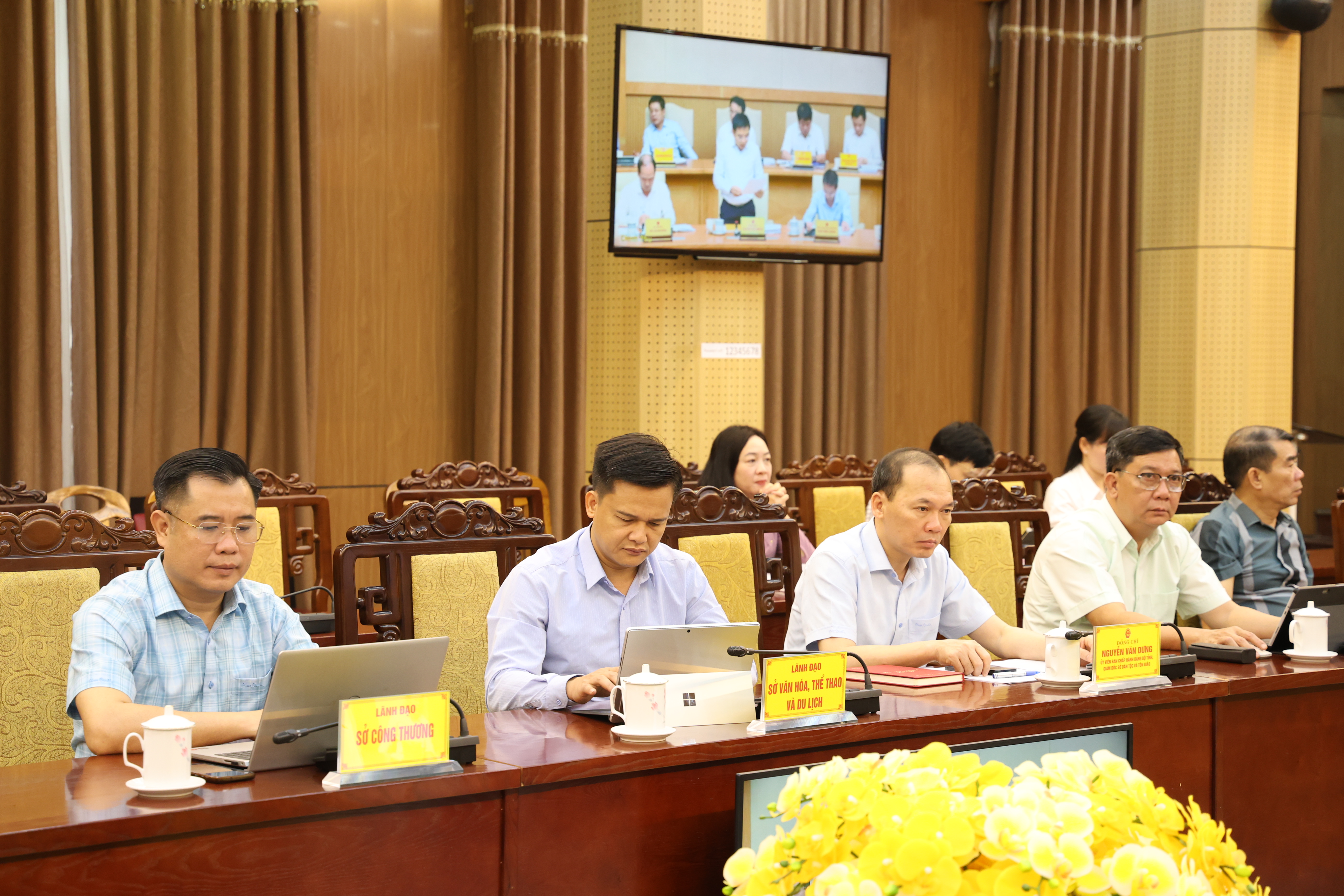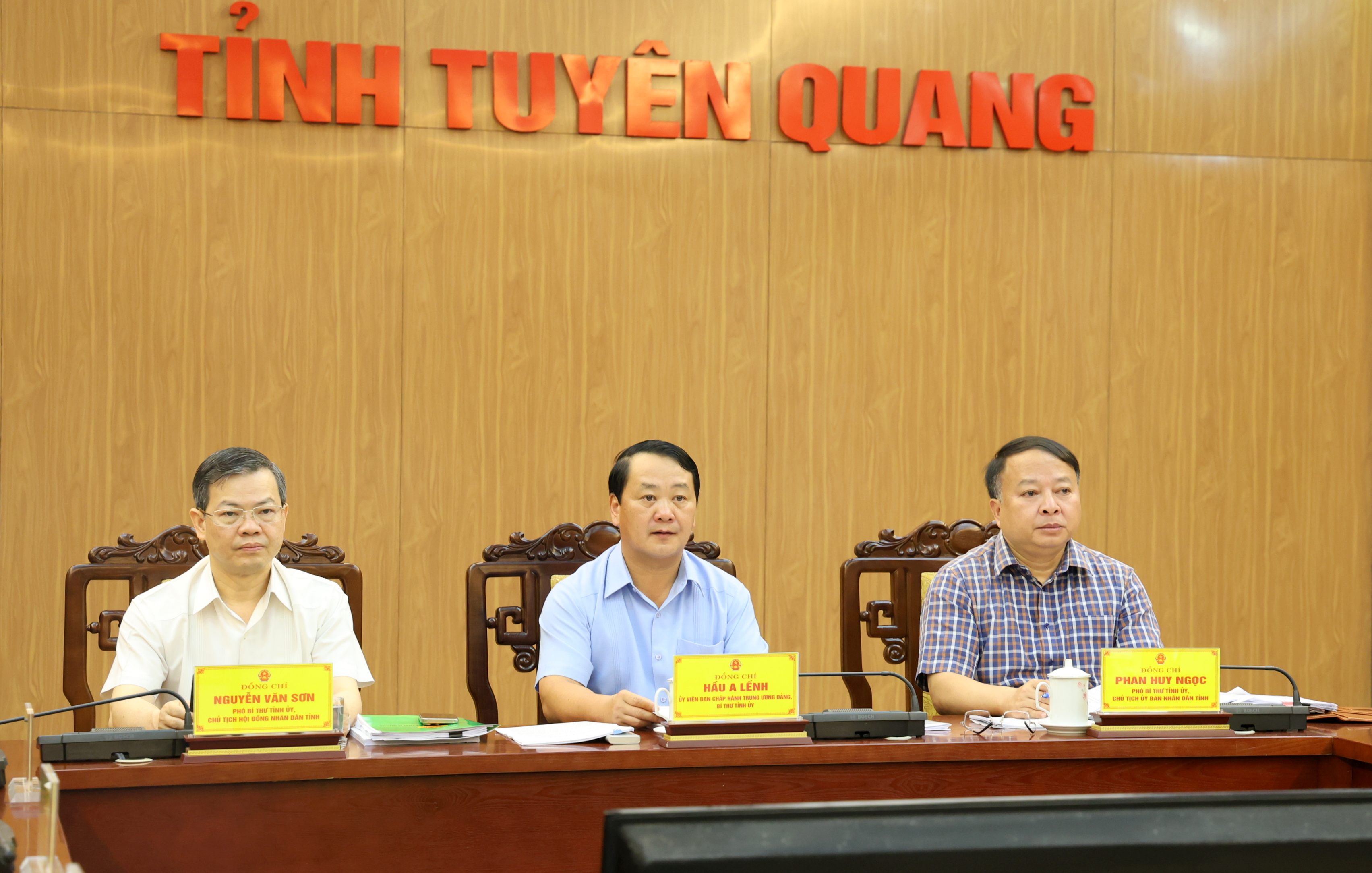 Các đồng chí: Hầu A Lềnh, Ủy viên BCH Trung ương Đảng, Bí thư Tỉnh ủy; Nguyễn Văn Sơn, Phó Bí thư Tỉnh ủy, Chủ tịch HĐND tỉnh; Phan Huy Ngọc, Phó Bí thư Tỉnh ủy, Chủ tịch UBND tỉnh dự và chủ trì hội nghị tại điểm cầu tỉnh.