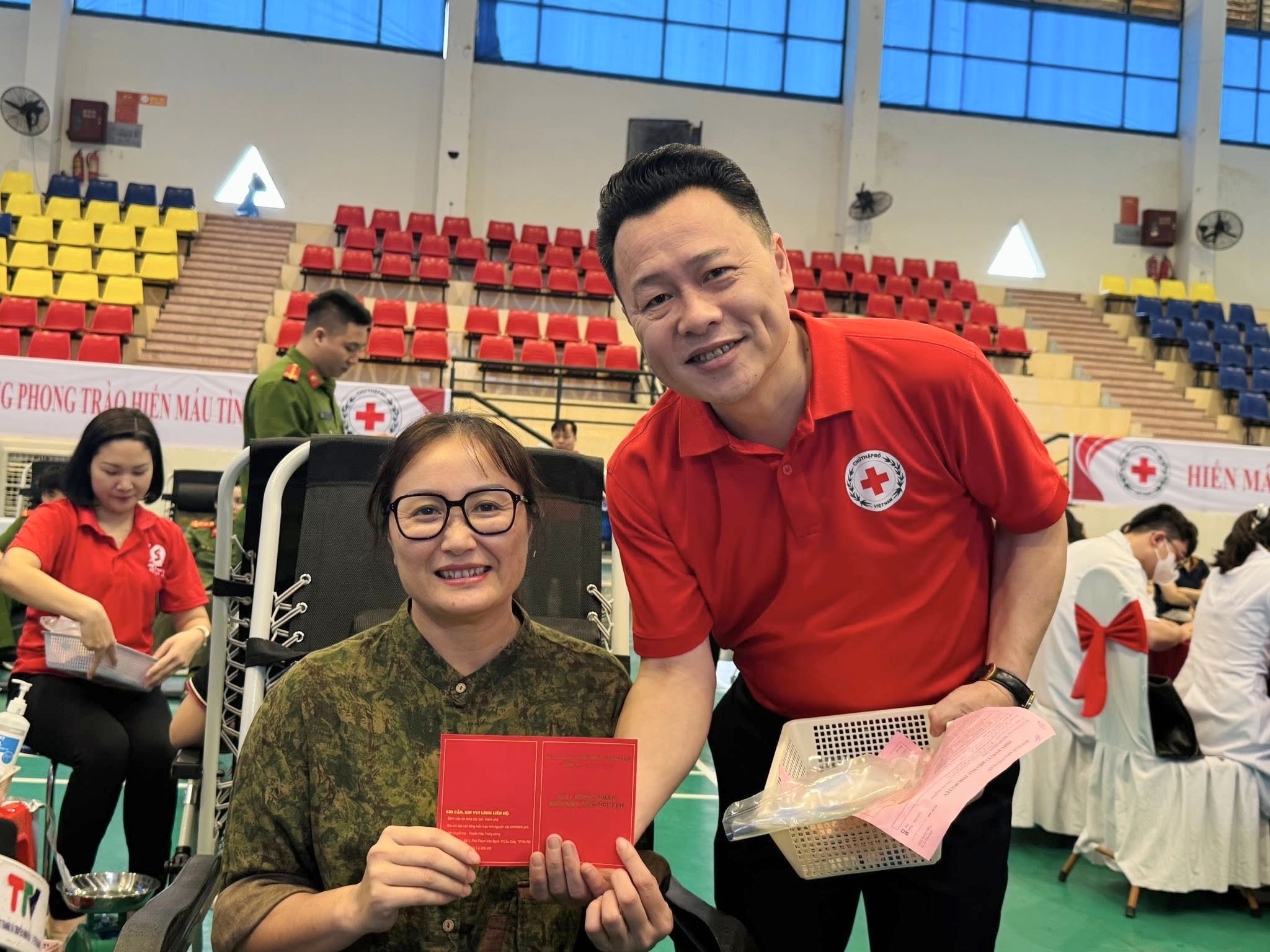 Ông Nguyễn Hoàng Long, Chủ tịch Hội Chữ thập đỏ tỉnh Tuyên Quang trao giấy chứng nhận cho người hiến máu tình nguyện.