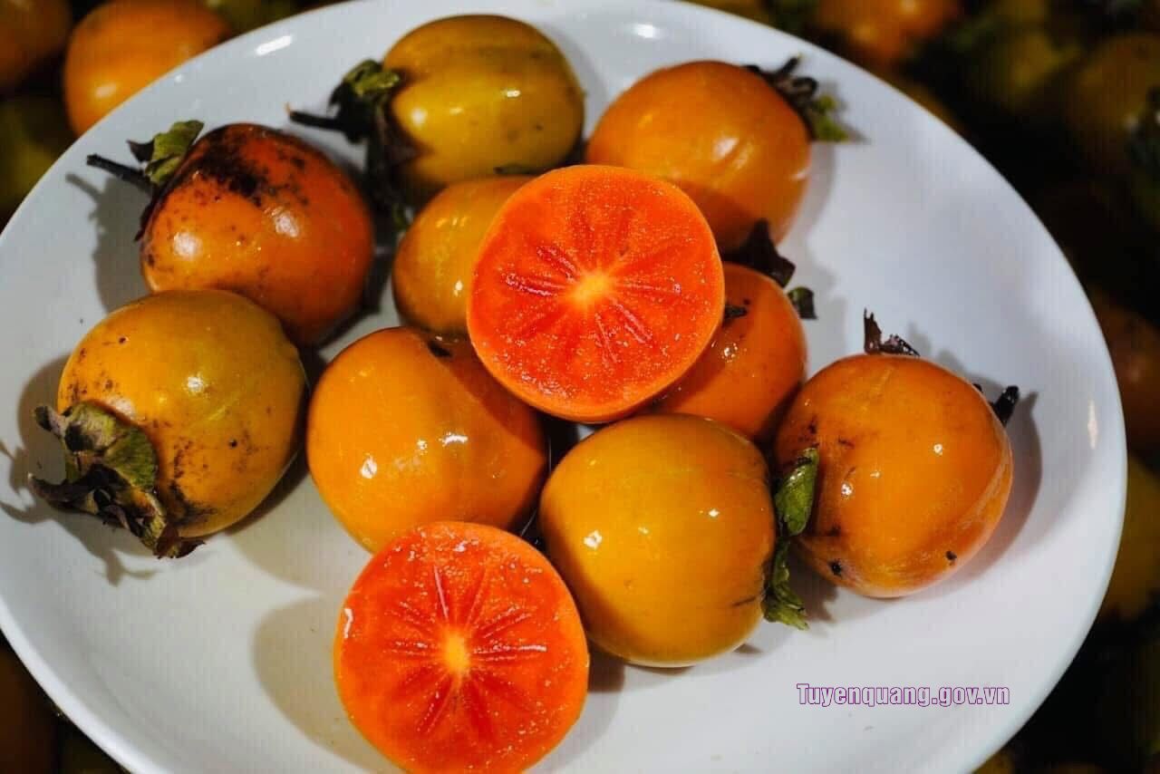 Hồng không hạt Tuyên Quang nổi tiếng bởi vị ngọt thanh, giòn tan, thơm mát, quả chín vàng đỏ, căng mọng, đặc biệt không có hạt. Sản phẩm không chỉ chinh phục thực khách trong và ngoài tỉnh mà còn được đưa vào chương trình OCOP, trở thành một trong những “đặc sản” tiêu biểu của xứ Tuyên mỗi độ thu về.