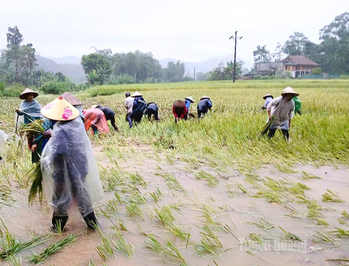Tương tự, xã Bắc Quang cũng cử cán bộ ứng trực tại các điểm bị ngập lụt do mưa bão để cảnh báo người dân, phương tiện không đi vào khu vực nguy hiểm. Đồng thời, các lực lượng “4 tại chỗ” đang huy động toàn bộ lực lượng giúp các gia đình vừa gặt vừa di chuyển lúa lên các khu vực cao hơn để tránh bị ngập, giảm thiểu nguy cơ mất trắng.