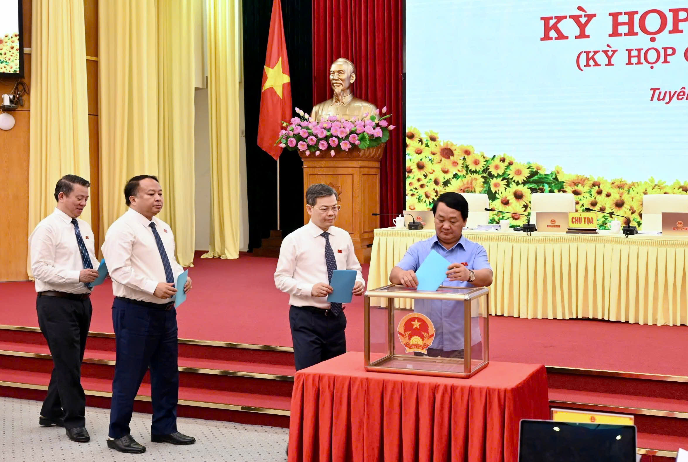 Các đại biểu bỏ phiếu bầu Ủy viên UBND tỉnh nhiệm kỳ 2026 – 2031.