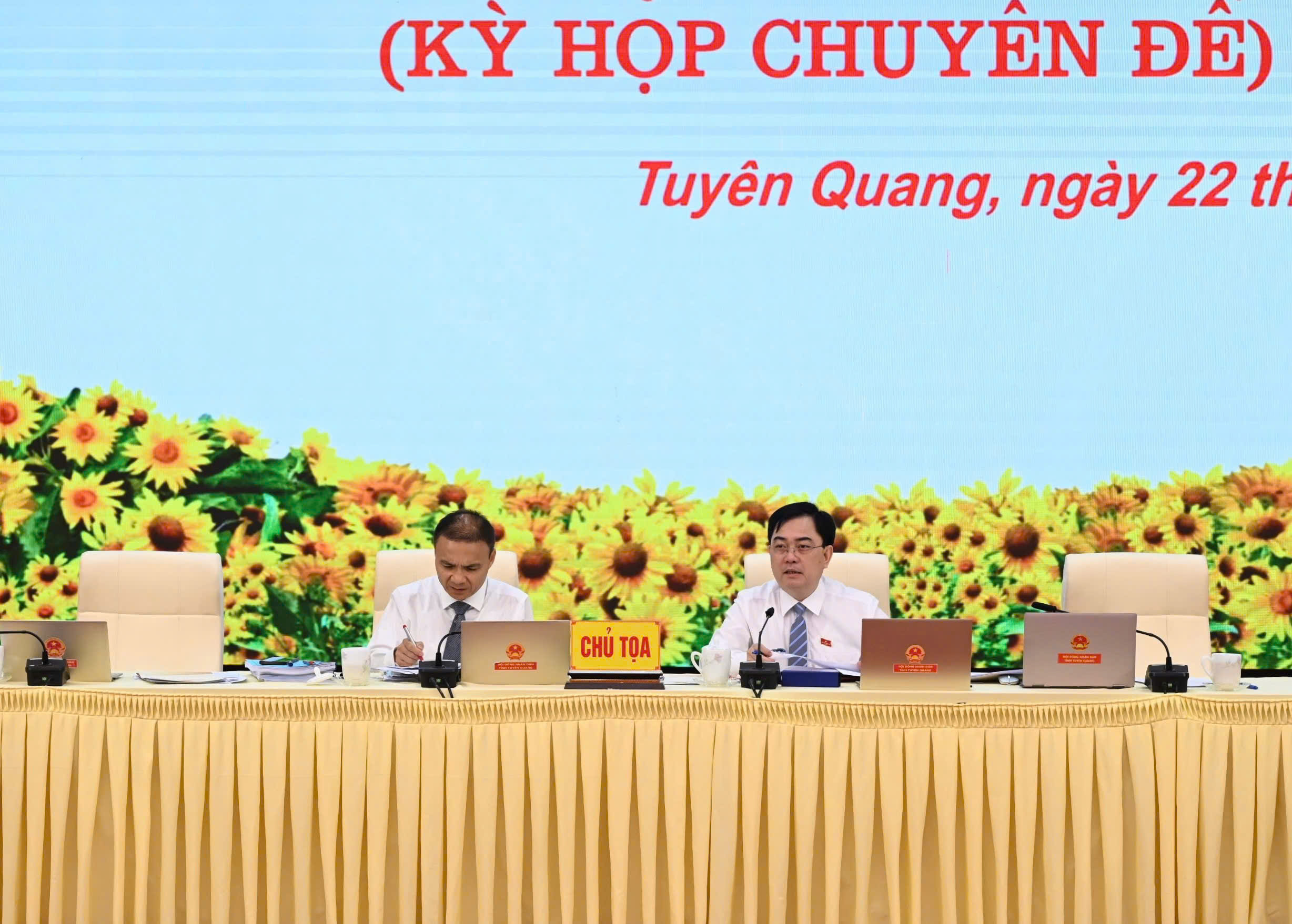 Trong khuôn khổ kỳ họp, các đại biểu đã nghe, xem xét 14 dự thảo nghị quyết chuyên đề, bao gồm các Nghị quyết: Bổ sung nội dung kế hoạch phát triển kinh tế - xã hội 5 năm 2026-2030 và kế hoạch phát triển kinh tế - xã hội năm 2026 tỉnh Tuyên Quang; Điều chỉnh, bổ sung Kế hoạch đầu tư công vốn ngân sách trung ương năm 2025 kéo dài thời gian thực hiện và giải ngân đến hết ngày 31/12/2026 tại Nghị quyết số 105 ngày 29/12/2025 của HĐND tỉnh; các Nghị quyết liên quan đến cơ chế, chính sách thực hiện cụ thể hóa các nhiệm vụ trọng tâm, đột phá theo Nghị quyết Đại hội đại biểu Đảng bộ tỉnh lần thứ nhất, nhiệm kỳ 2025 - 2030, gồm: Quy định mức cấp kinh phí, mức hỗ trợ từ ngân sách nhà nước thực hiện một số chính sách về lâm nghiệp trên địa bàn tỉnh; quy định về chính sách hỗ trợ cho Tổ công nghệ số cộng đồng trên địa bàn tỉnh.