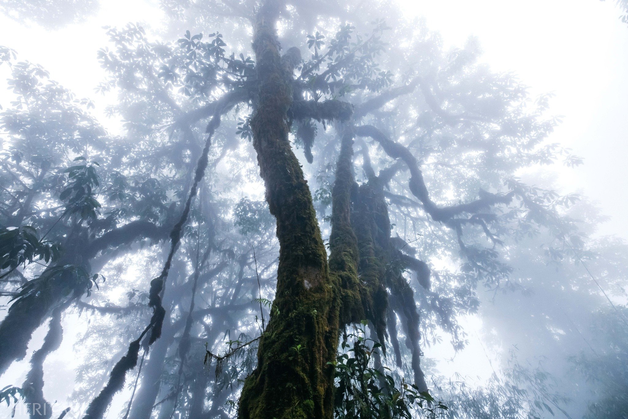 Đó là khu rừng già mang vẻ huyền ảo nằm ở đỉnh núi Tây Côn Lĩnh - Tuyên Quang. Những gốc cây hàng trăm năm tuổi, 5 - 7 người nối tay nhau ôm không hết, vươn mình kiêu hãnh như những bàn tay khổng lồ đón ánh sáng mặt trời để sinh tồn. Lớp rêu xanh phủ kín thân cây càng làm cho khung cảnh vốn đã huyền bí càng trở nên siêu thực.
