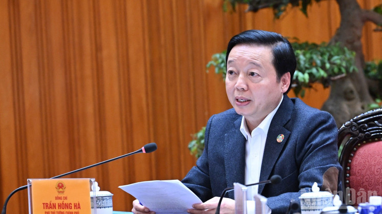 Phó Thủ tướng Trần Hồng Hà phát biểu ý kiến tại cuộc họp. (Ảnh: TRẦN HẢI)