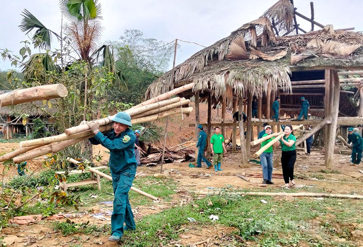 Cán bộ xã Bạch Xa giúp người dân dỡ nhà giao mặt bằng thi công cao tốc Tuyên Quang - Hà Giang.