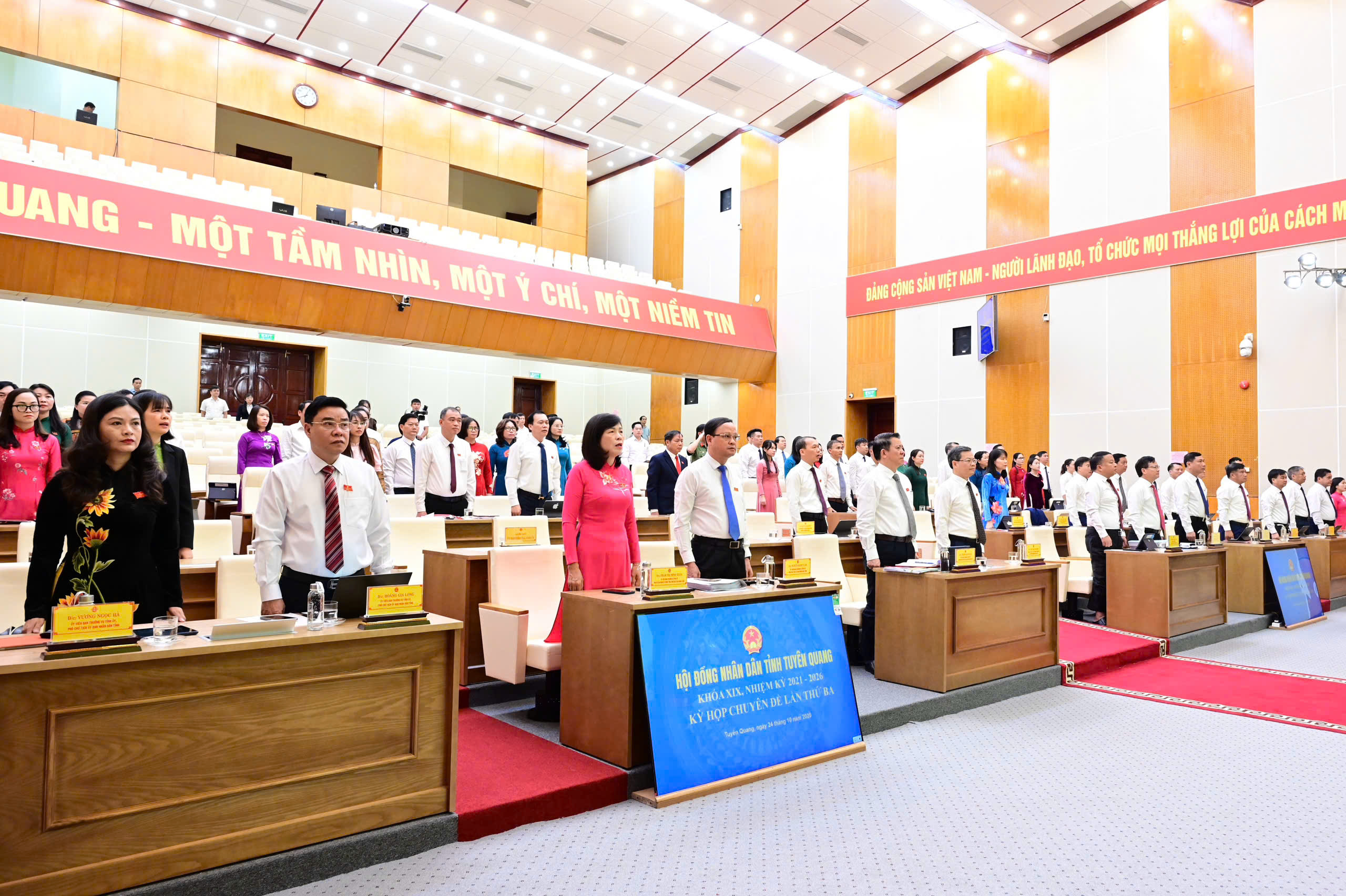 Nêu rõ tinh thần quyết tâm, Chủ tịch HĐND tỉnh nhấn mạnh: Cùng với cả nước trong kỷ nguyên mới, HĐND tỉnh Tuyên Quang phải tiếp tục đổi mới mạnh mẽ, nâng cao chất lượng, hiệu quả hoạt động. Mỗi kỳ họp hoặc phiên họp, hội nghị phải “gọn mà hiệu quả”; mỗi cuộc giám sát phải “trúng”, “đúng” và kịp thời; sau giám sát phải tạo chuyển biến tích cực trong phát triển kinh tế - xã hội, bảo đảm quốc phòng, an ninh để hoạt động của HĐND xứng đáng là cơ quan quyền lực nhà nước ở địa phương, góp phần xây dựng xã hội yên bình, người dân có cuộc sống ấm no, hạnh phúc hơn.