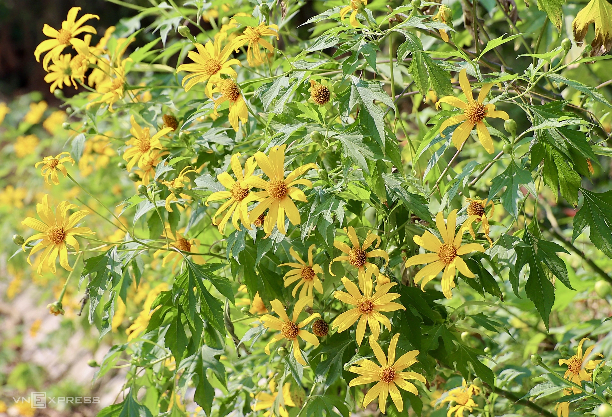Hoa dã quỳ thường bung nở trên dãy núi Tản Viên và hai bên đường dẫn lên Vườn Quốc gia Ba Vì từ đầu tháng 11 và rực rỡ trong khoảng 2-3 tuần, tùy điều kiện thời tiết.
