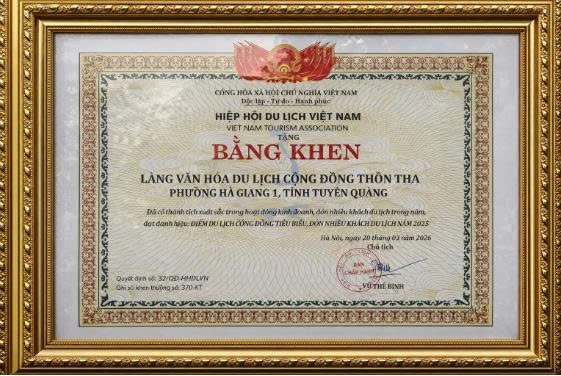 Mới đây, Làng văn hóa cộng đồng thôn Tha vinh dự được Hiệp hội Du lịch Việt Nam bình chọn là 1 trong 6 điểm du lịch cộng đồng tiêu biểu đón nhiều khách nhất cả nước năm 2025. Đây là sự ghi nhận xứng đáng cho những nỗ lực bền bỉ của cấp ủy, chính quyền địa phương và Nhân dân trong phát triển du lịch gắn với bảo tồn, phát huy bản sắc văn hóa dân tộc.