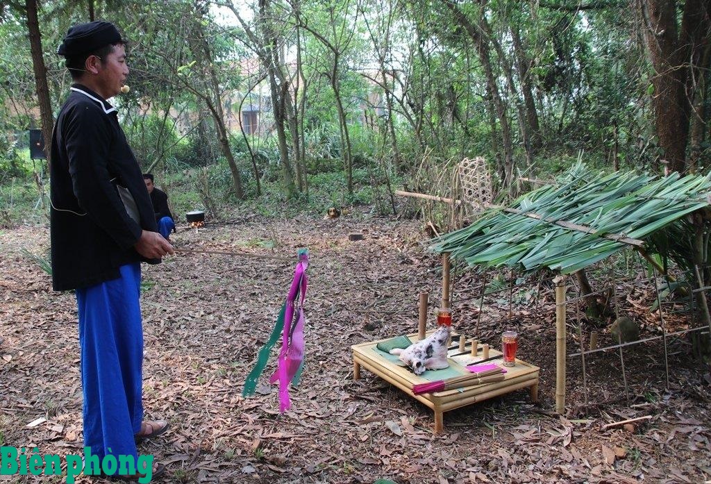 Thầy mo chuẩn bị làm lễ cầu mưa tại khu rừng thiêng của bản. Ảnh: T.Lâm