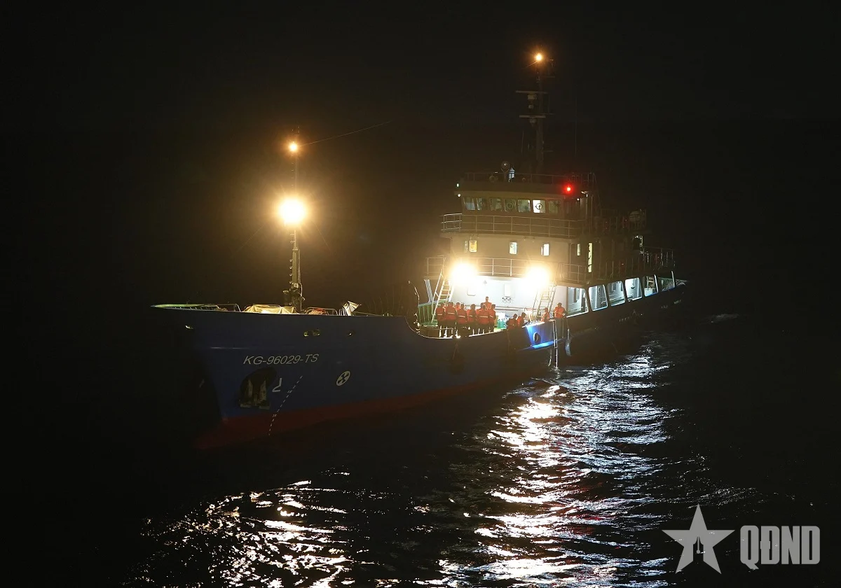 Tối cùng ngày, Tàu CSB 8005 tiếp cận tàu dân quân thường trực KG 96029 TS đang thực hiện nhiệm vụ theo đúng kế hoạch. Giữa biển đêm thăm thẳm, ánh đèn tín hiệu và tiếng máy tàu hòa vào tiếng sóng vỗ ì oạp. Hai chiếc xuồng được hạ để chở đoàn công tác sang chúc Tết và tặng quà cán bộ, chiến sĩ trên tàu KG 96029 TS. Do đêm tối, cuộc gặp gỡ diễn ra nhanh chóng nhưng ấm áp. Những thùng quà Tết được chuyển sang, những cái bắt tay vội vàng nhưng mang nhiều ý nghĩa, bởi ở nơi biển xa, sự hiện diện của đoàn công tác đã là lời chúc Tết trọn vẹn đối với cán bộ, chiến sĩ Tàu KG 96029 TS.