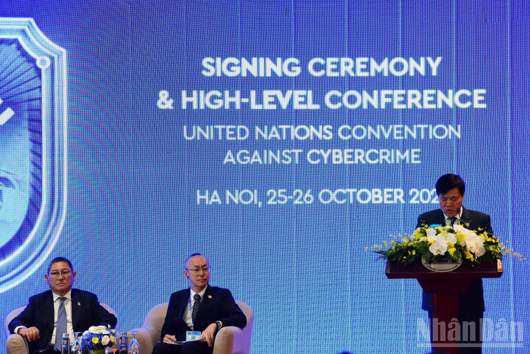 Đồng chí nhấn mạnh, Việt Nam đang từng bước hoàn thiện hệ thống pháp luật, củng cố năng lực kỹ thuật và nâng cao nhận thức của cộng đồng về an ninh mạng, đồng thời sẵn sàng hợp tác với các nước, các tổ chức quốc tế trong triển khai Công ước, chia sẻ kinh nghiệm và hỗ trợ lẫn nhau trong đấu tranh chống tội phạm công nghệ cao, góp phần xây dựng một không gian mạng an toàn, tin cậy và nhân văn.