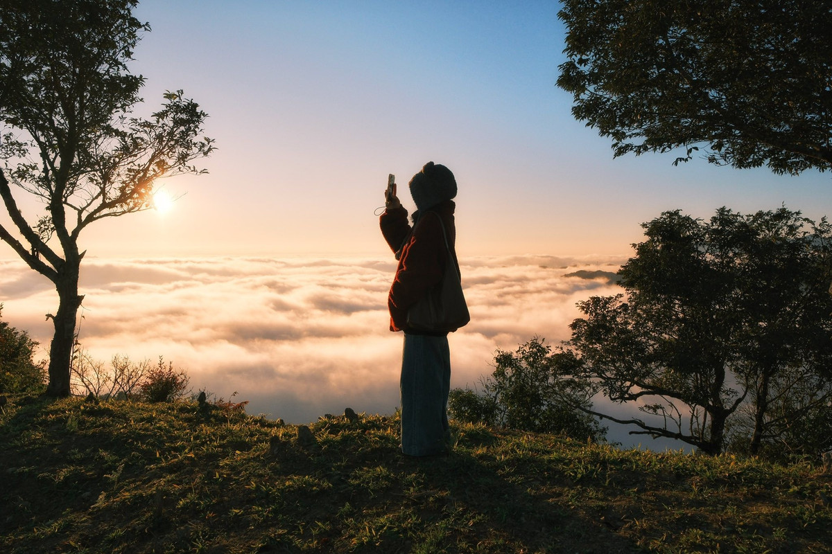 Để thưởng trọn khoảnh khắc ấy, du khách nên chọn điểm ngắm ở vị trí đồi cao – nơi có tầm nhìn bao quát không gian núi rừng trùng điệp. Khi mặt trời dần đổi sắc từ vàng cam sang đỏ thẫm, ánh sáng phản chiếu lên lớp mây dày khiến toàn bộ đường chân trời nhuốm màu rực rỡ.