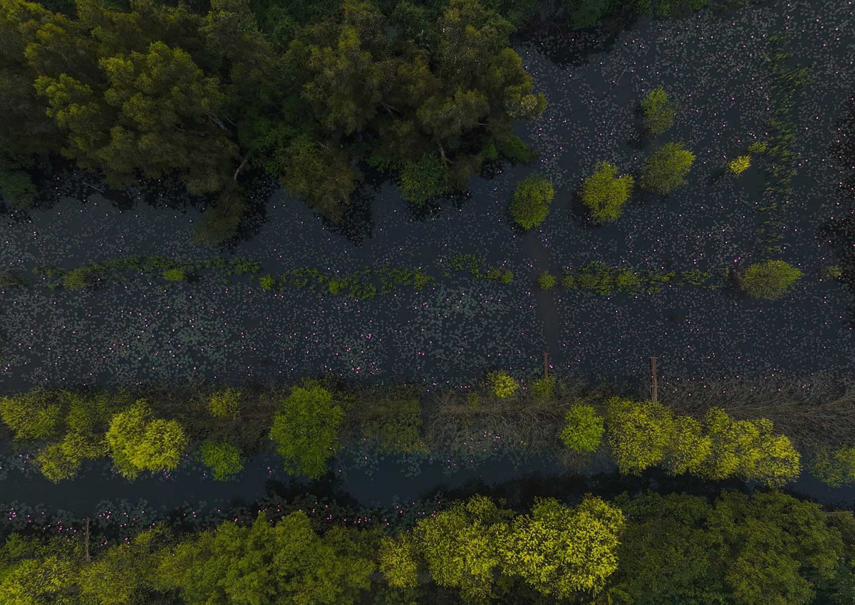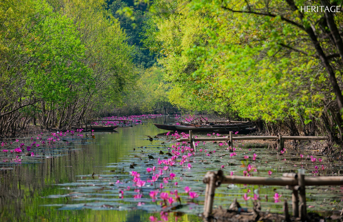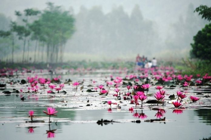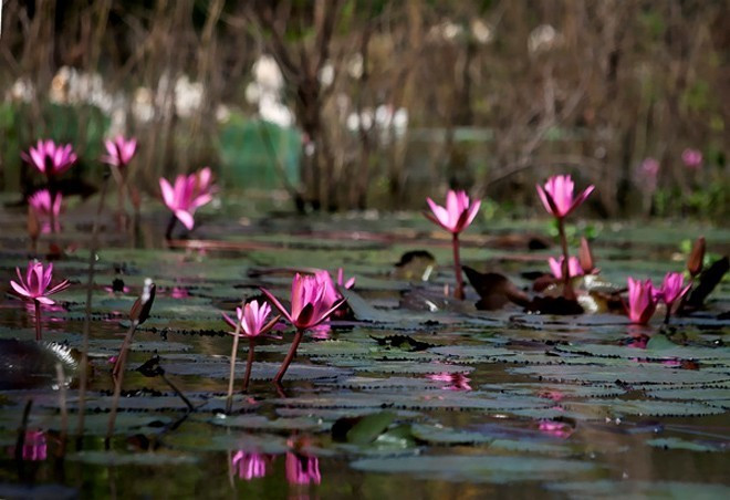 khoác lên mình sắc tím hồng của những đóa hoa súng nở bung giữa mặt nước. Ảnh dulich