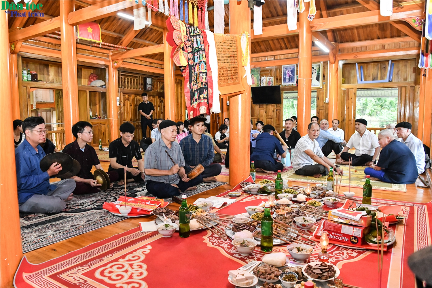 Không gian nghi lễ được bài trí trang trọng, khói hương lan tỏa, trống chiêng vang vọng. Cả bản cùng hướng về buổi lễ - nơi người được “chọn” chính thức bước vào con đường hành nghề thầy cúng
