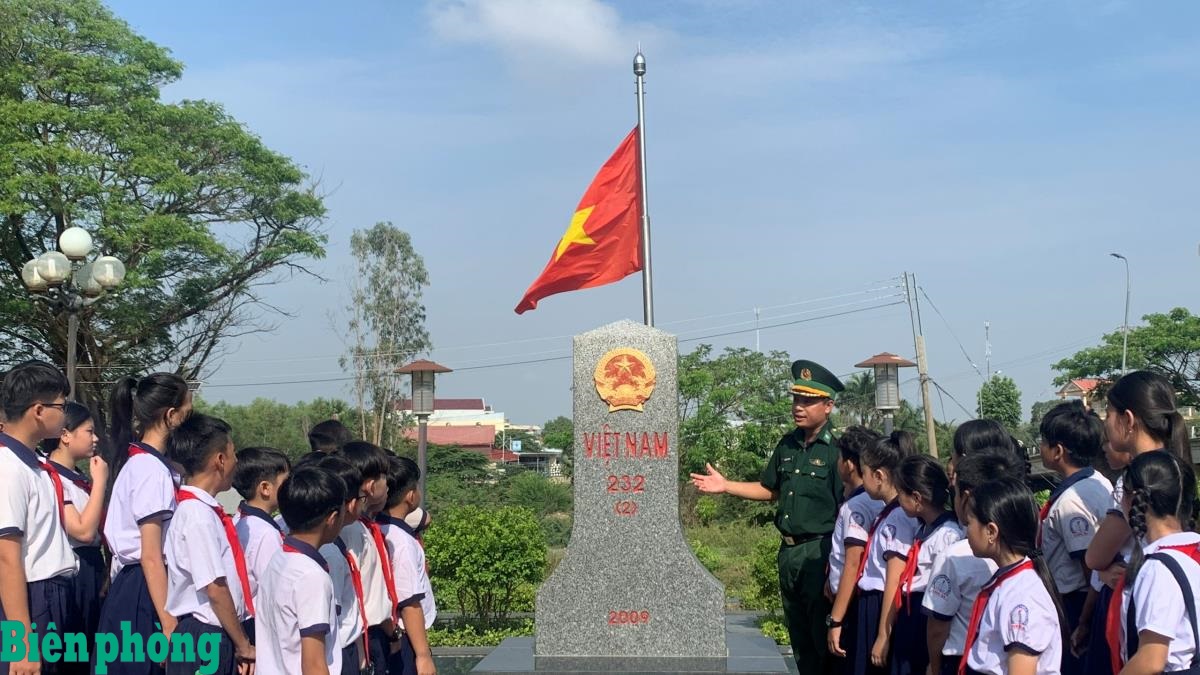 mốc quốc giới và truyền thống lịch sử BĐBP cho các em học sinh. Ảnh: CTV
