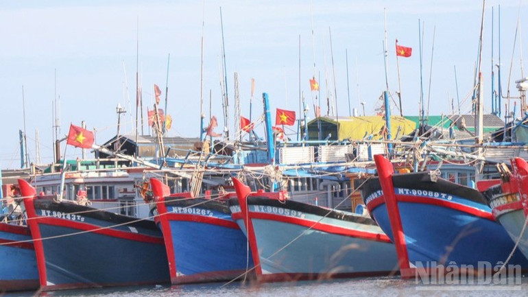 Giữa không gian rộn ràng tại các xưởng sửa chữa, từng con tàu dần khoác lên mình lớp sơn mới rực rỡ. Lá cờ Tổ quốc được thay mới, treo trang trọng nơi mũi tàu, nổi bật giữa sắc xanh của biển trời. Đó không chỉ là dấu hiệu nhận biết, mà còn là niềm tự hào, là điểm tựa tinh thần để ngư dân yên tâm vươn khơi, bám biển.