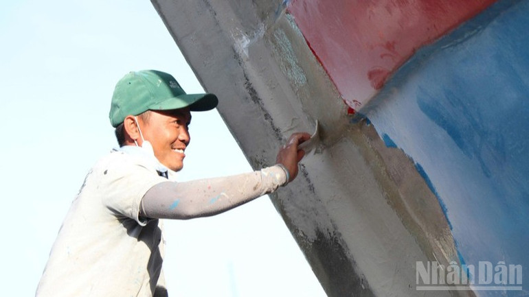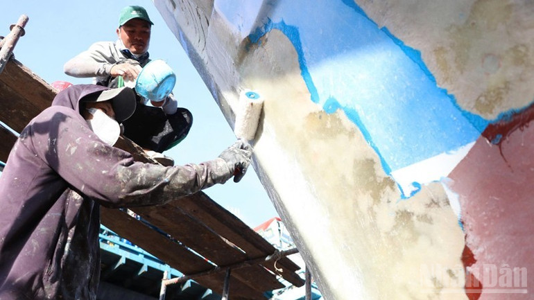 Sơn mới toàn bộ bên ngoài tàu cá được ngư dân quan tâm, nhằm khoác chiếc áo mới,