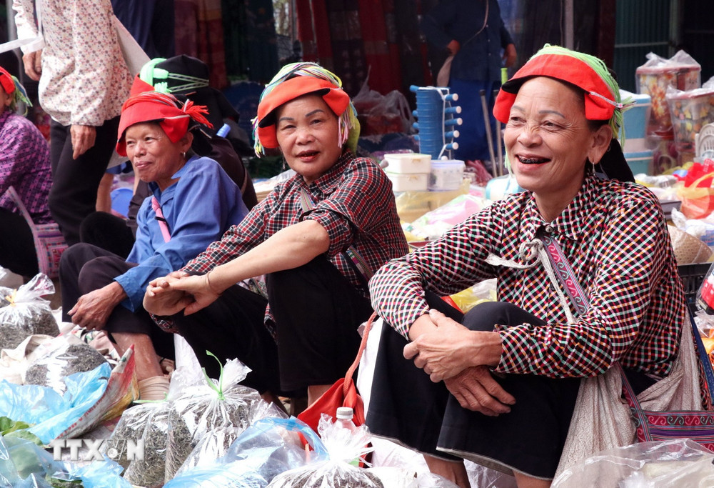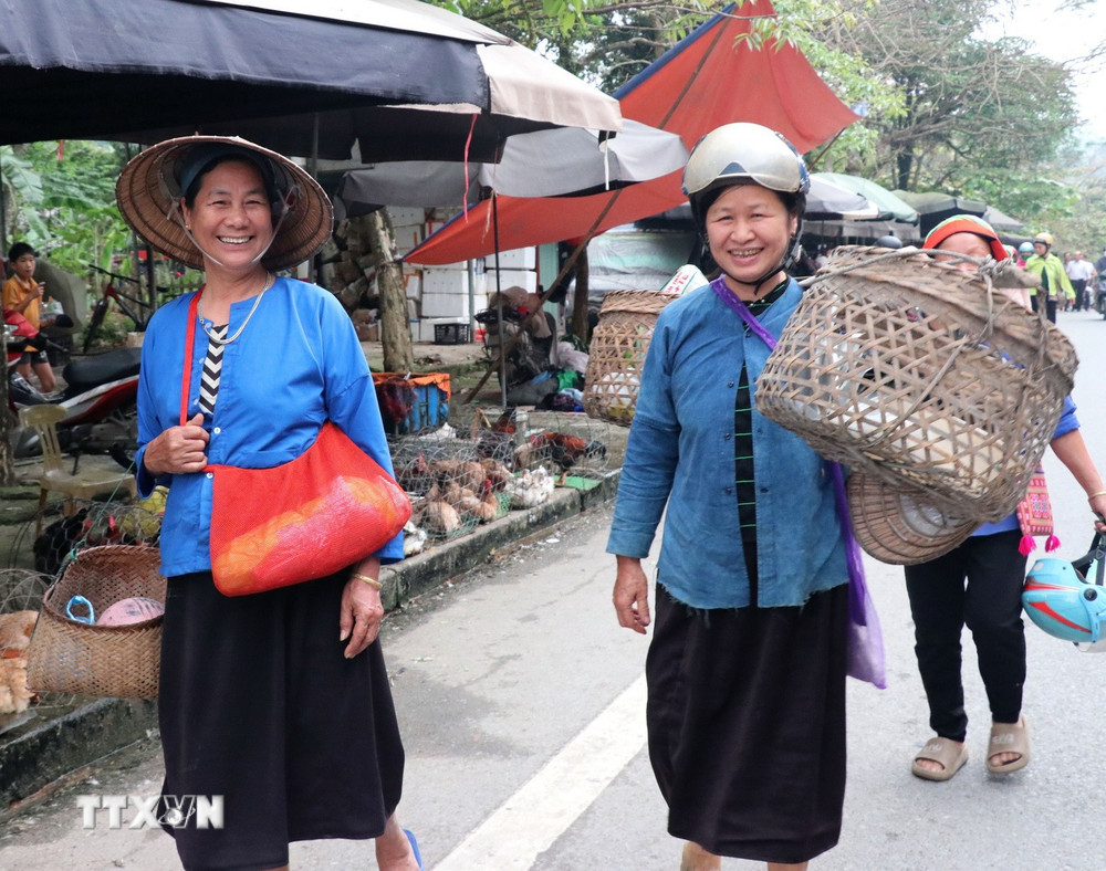 Bà con người dân tộc đi chợ phiên Phương Độ (Hà Giang 1, Tuyên Quang). (Ảnh: Đức Thọ/TTXVN)