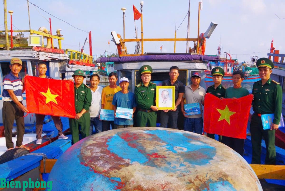 trao tặng cờ Tổ quốc và ảnh Bác Hồ, vận động ngư dân đặc khu Lý Sơn, tỉnh Quảng Ngãi yên tâm vươn khơi bám biển.