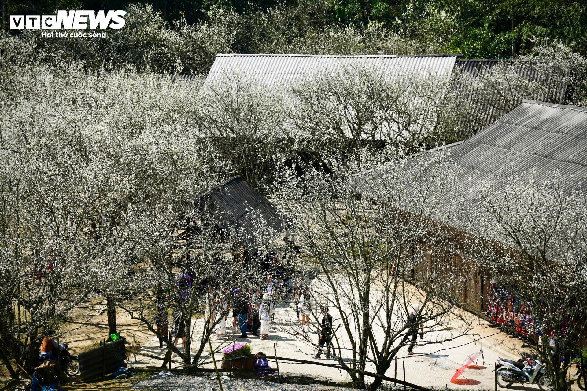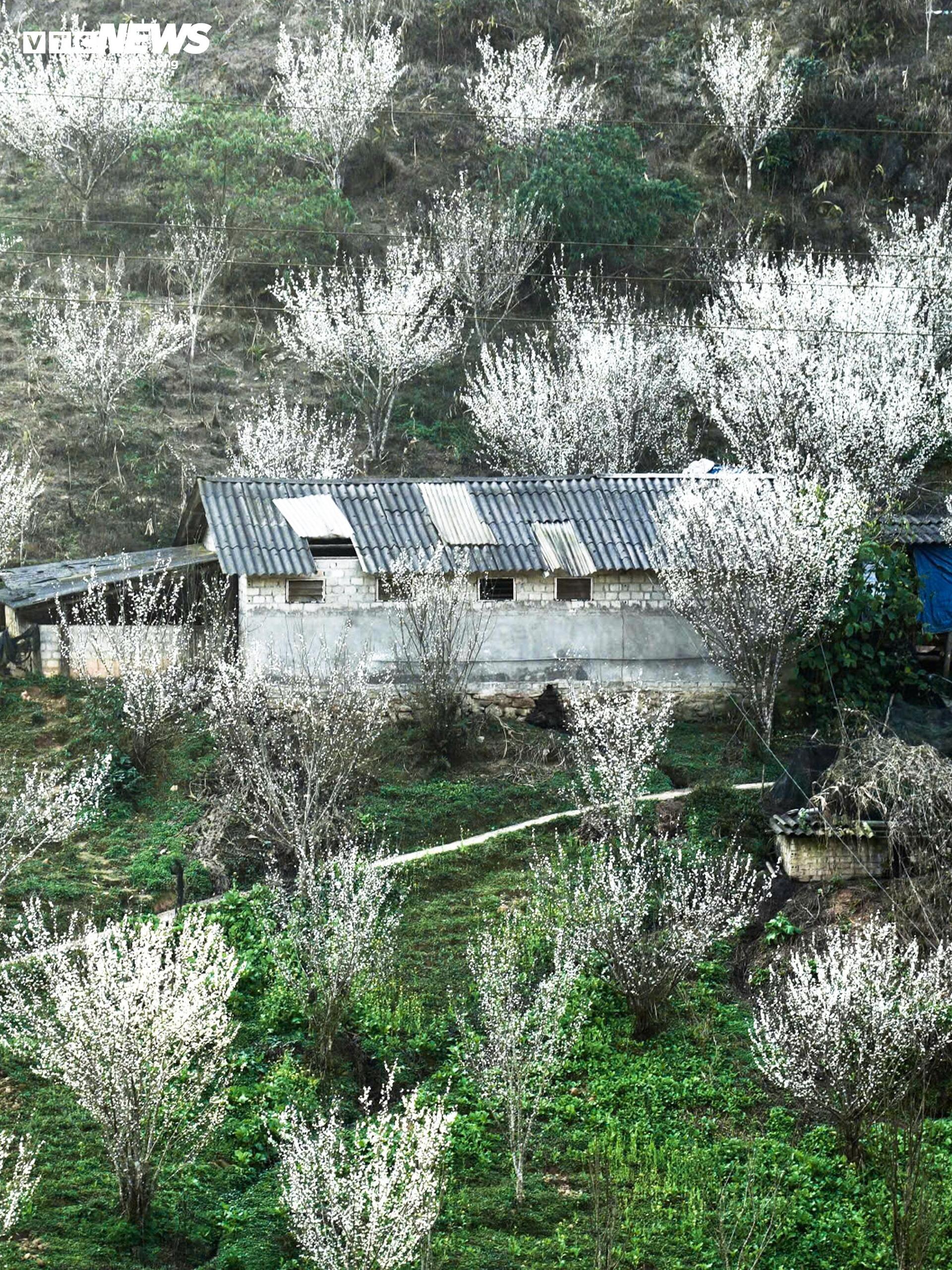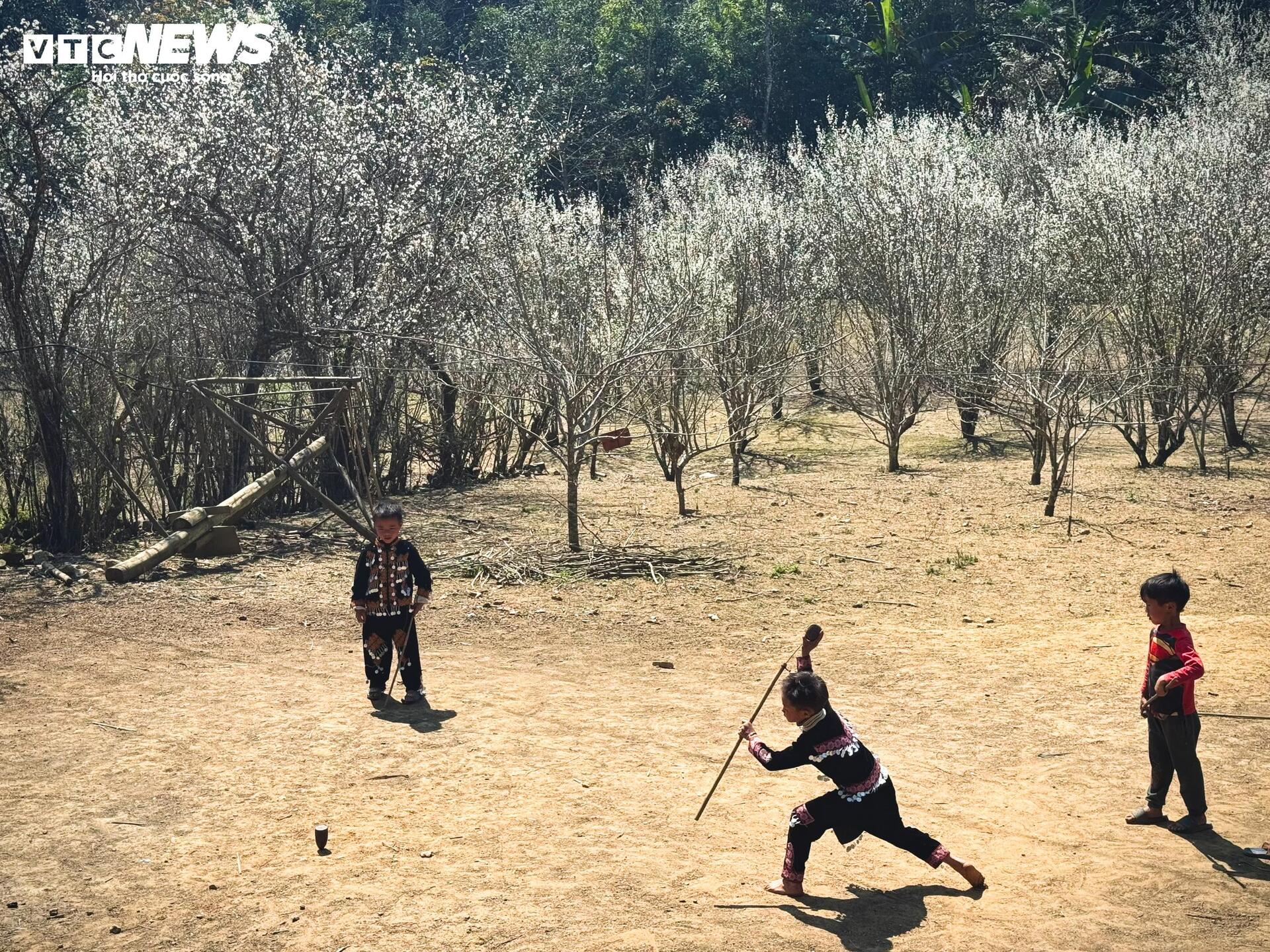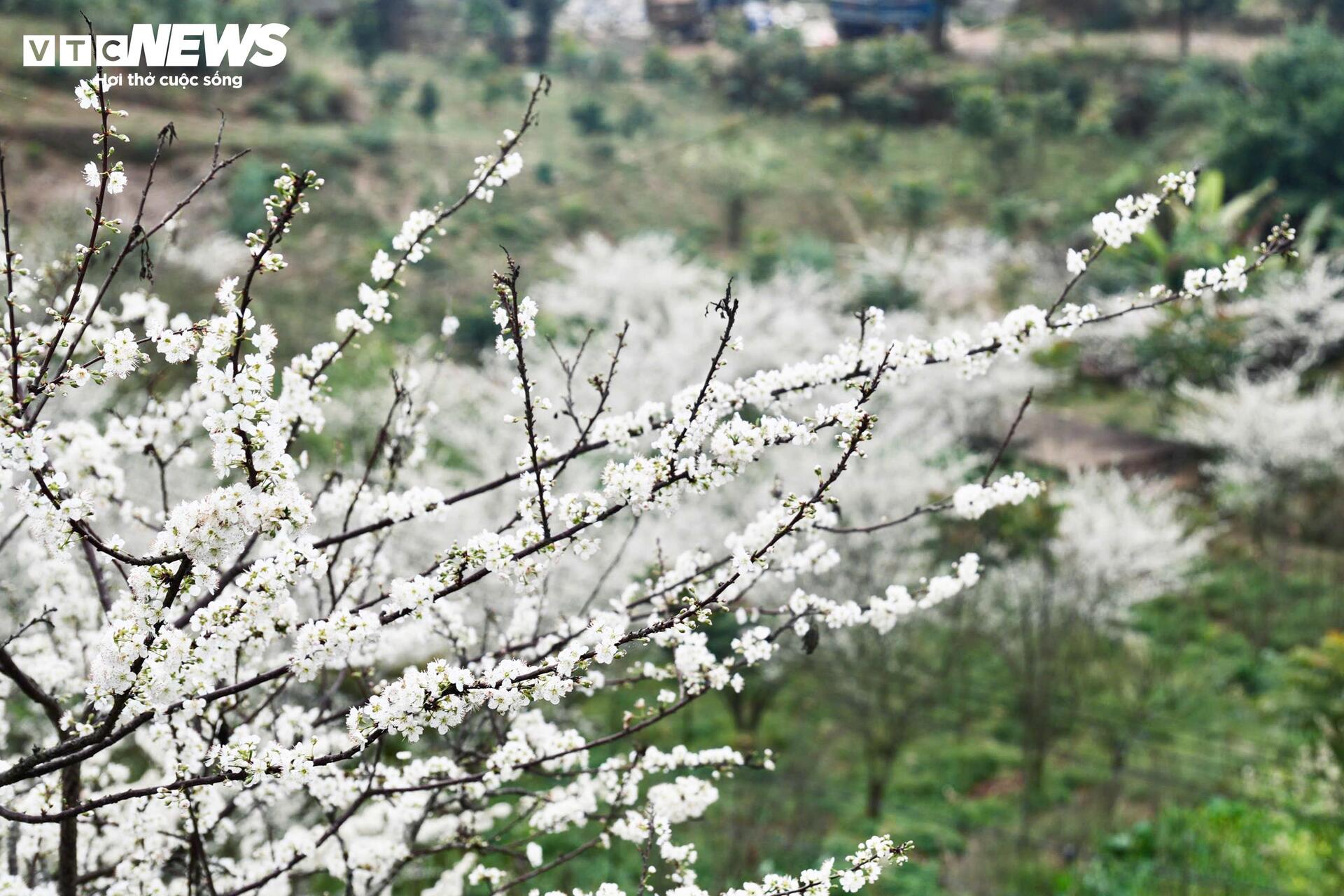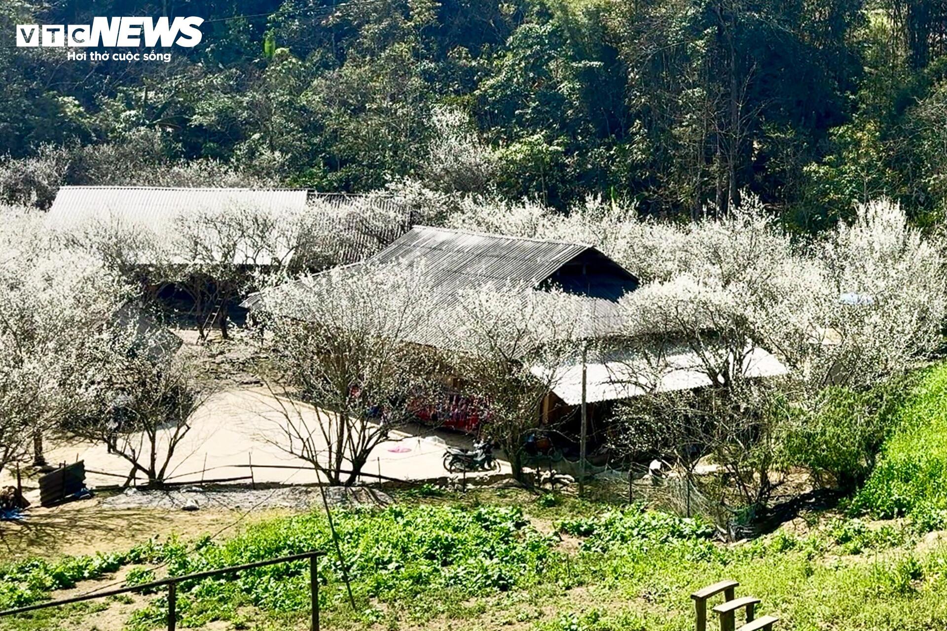 Trên các triền núi, sườn đồi và quanh bản làng, sắc trắng của hoa mận đồng loạt bung nở,