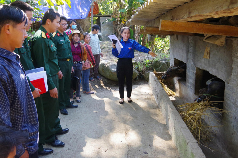 Đội viên trí thức trẻ tình nguyện Đoàn 313 tập huấn kỹ thuật phòng chống rét cho trâu, bò tại xã Thượng Lâm.