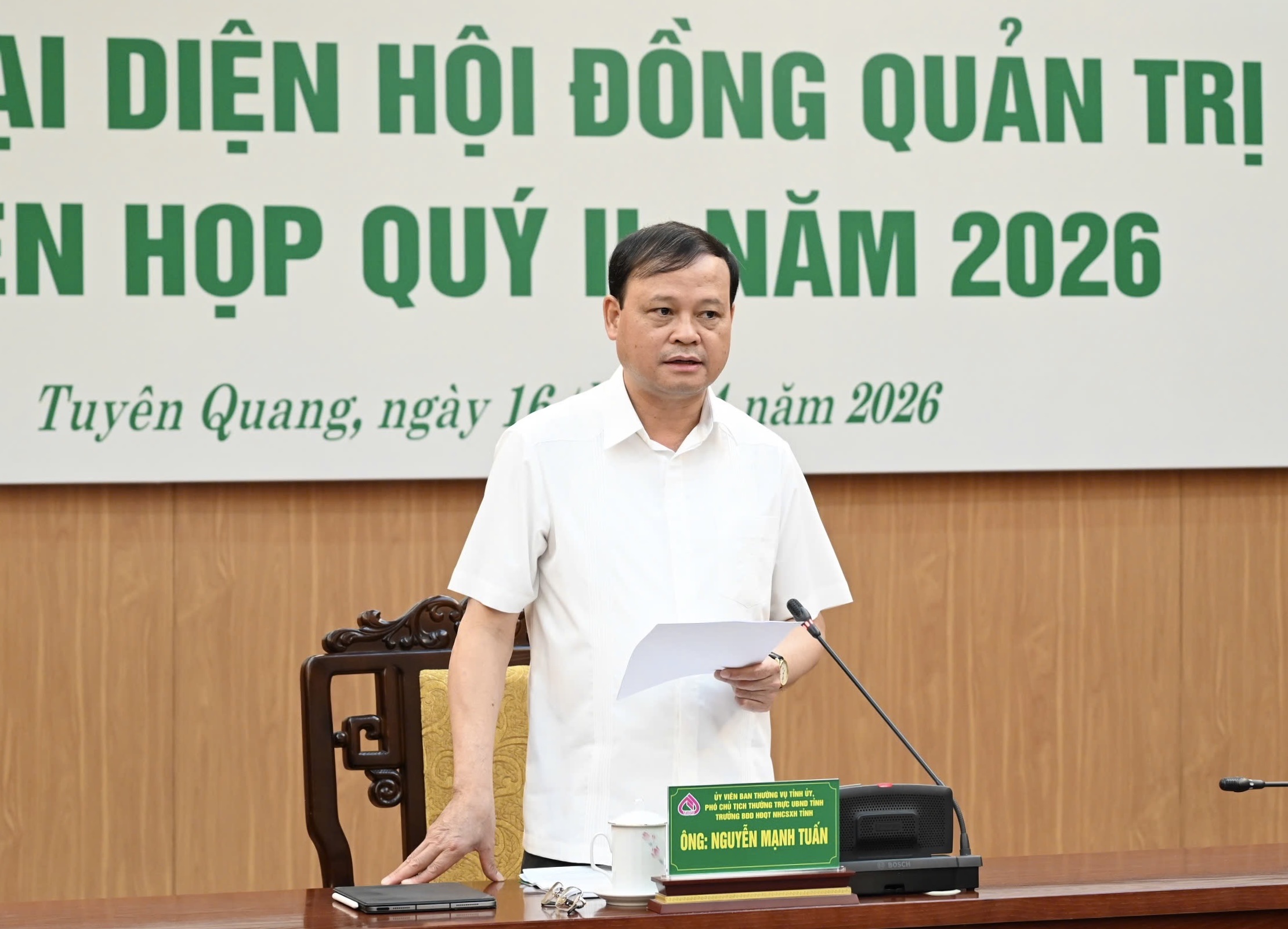 Phát biểu kết luận phiên họp, đồng chí Nguyễn Mạnh Tuấn, Phó Chủ tịch Thường trực UBND tỉnh, Trưởng Ban đại diện HĐQT NHCSXH tỉnh yêu cầu, trong quý II năm 2026, các thành viên HĐQT NHCSXH tỉnh cần tập trung thực hiện đồng bộ, quyết liệt các nhiệm vụ, giải pháp đã đề ra; trong đó tiếp tục làm tốt công tác tham mưu tổ chức thực hiện hoạt động tín dụng chính sách trên địa bàn, trọng tâm là triển khai các văn bản của Trung ương và của tỉnh. Từng thành viên trong Ban đại diện phải phát huy vai trò, trách nhiệm trong công tác lãnh đạo, chỉ đạo tại địa phương, lĩnh vực được phân công. Các cơ quan, đơn vị tăng cường phối hợp chặt chẽ nhằm nâng cao hiệu quả triển khai tín dụng chính sách.