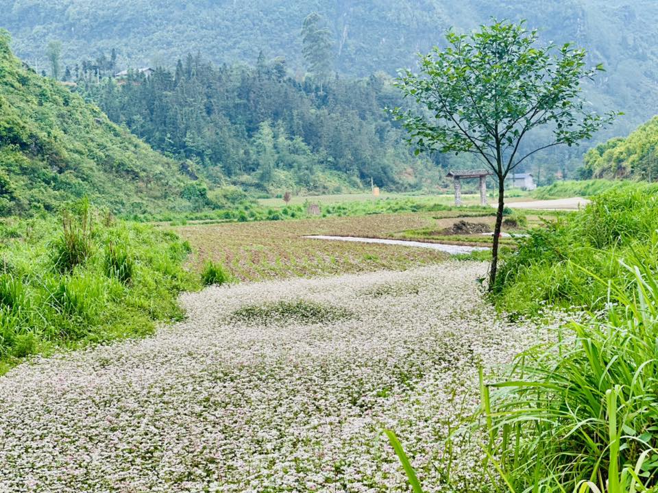 Khác với sự rực rỡ, dày đặc của mùa chính vụ, tam giác mạch tháng 4 tại Phố Bảng mang một nét duyên thầm rất riêng. Tại thôn Phố Là, những vạt hoa nở trắng muốt trải dài khắp các sườn đồi, nhìn từ xa tựa như những áng mây bồng bềnh phủ xuống thung lũng.