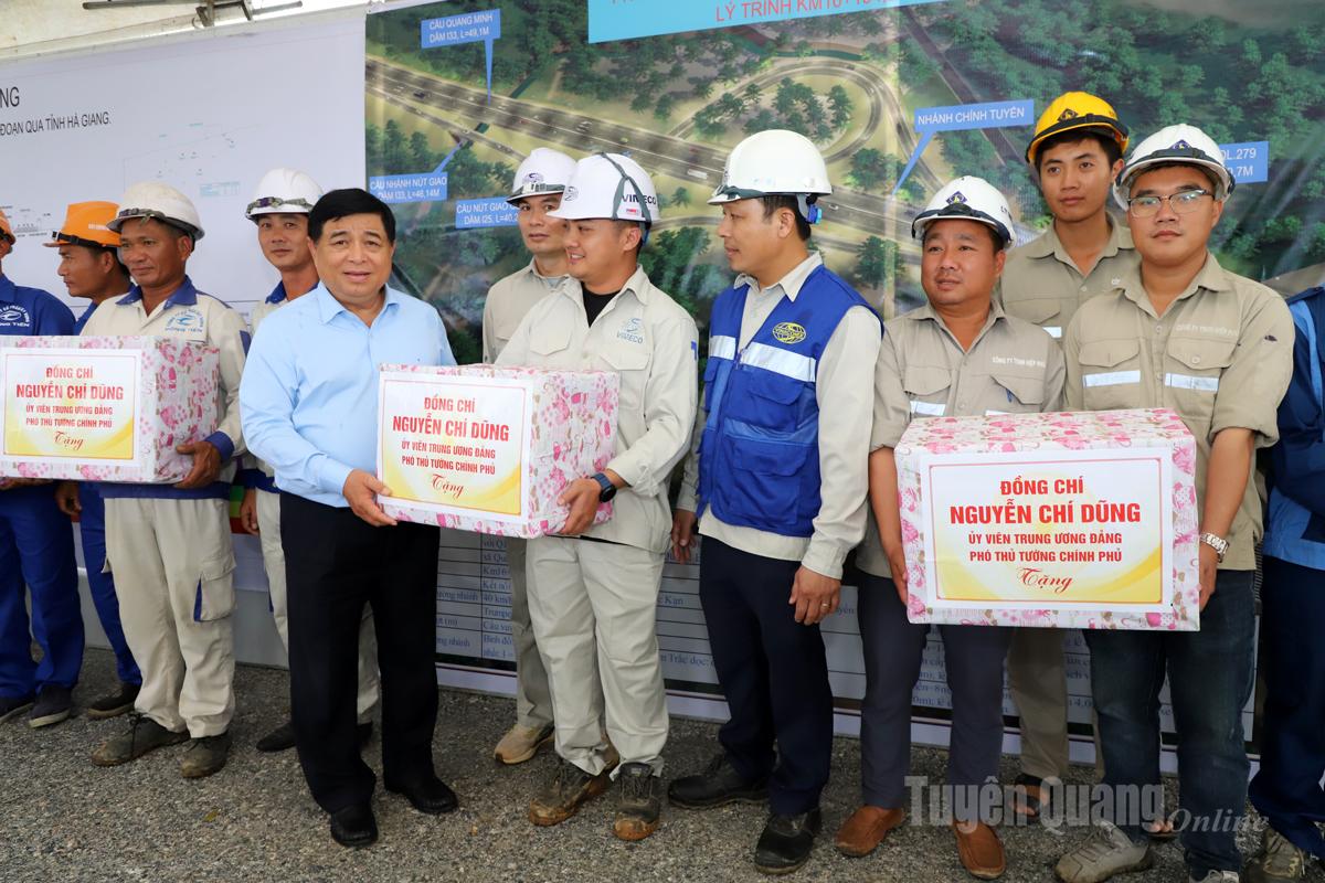 Phó Thủ tướng Chính phủ Nguyễn Chí Dũng tặng quà các đơn vị thi công Dự án Cao tốc Tuyên Quang - Hà Giang.